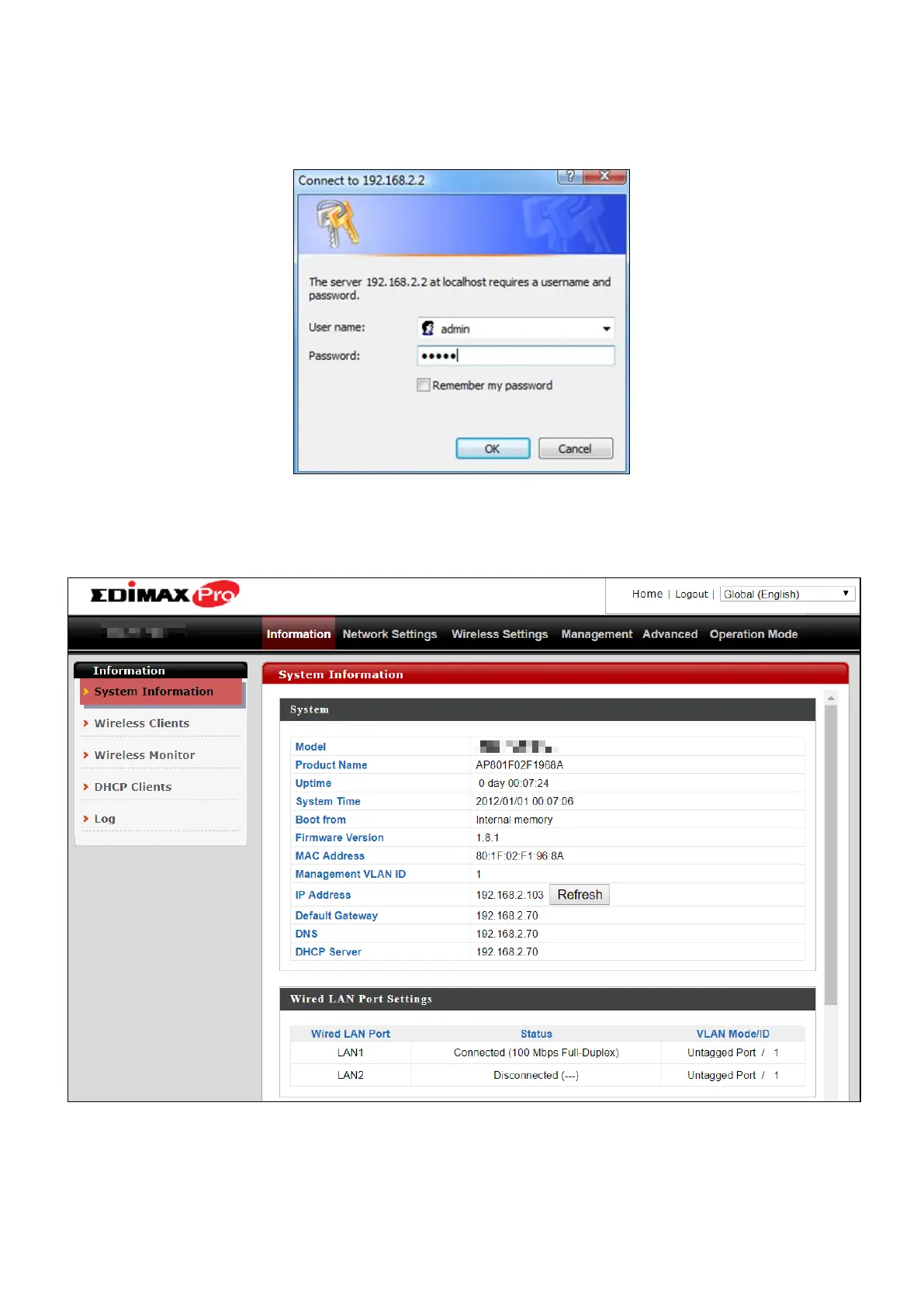 7. “System Information” home screen will be shown: