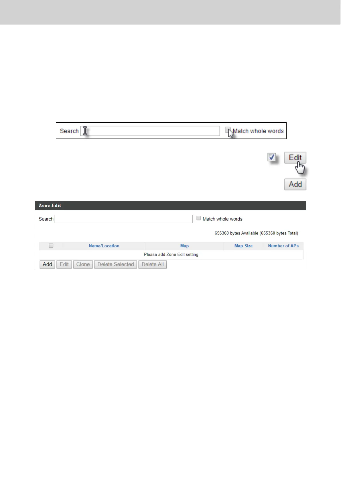 Zone Edit displays information about zones for use with the Zone Plan feature