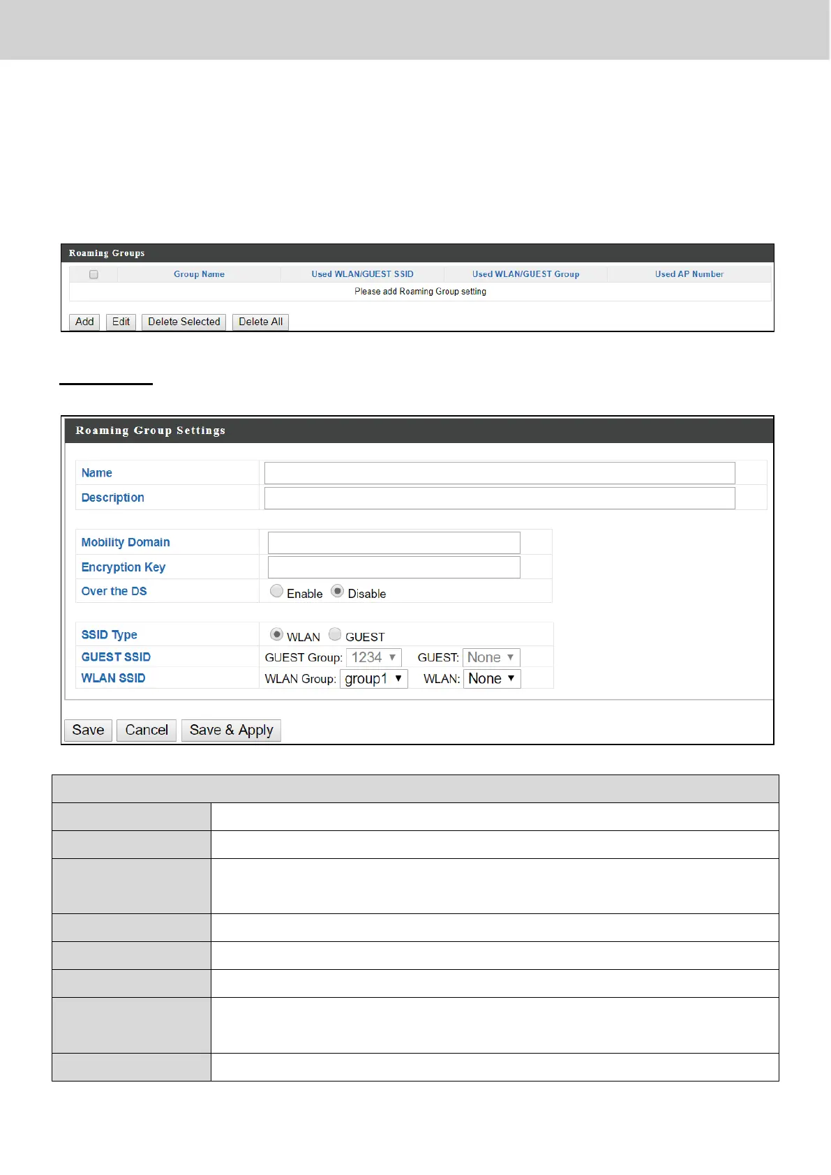 Enter / edit the name of roaming group.