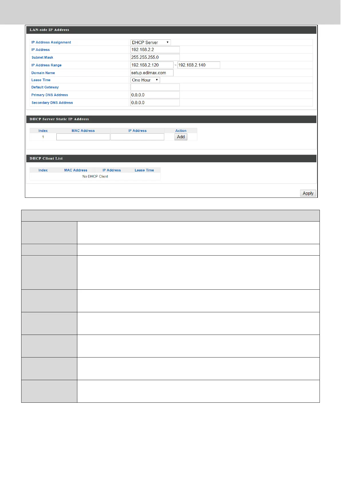 Select a lease time from the drop down menu. IP addresses will