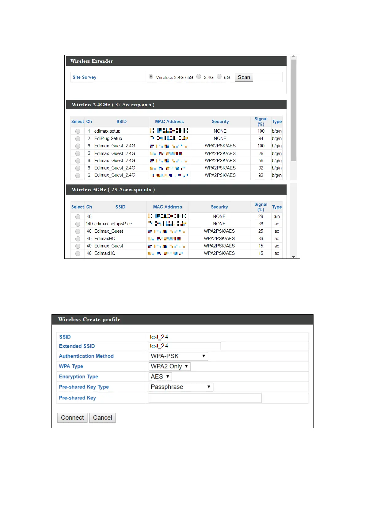 security details for the source SSID (e.g. Pre-shared Key). Click Connect