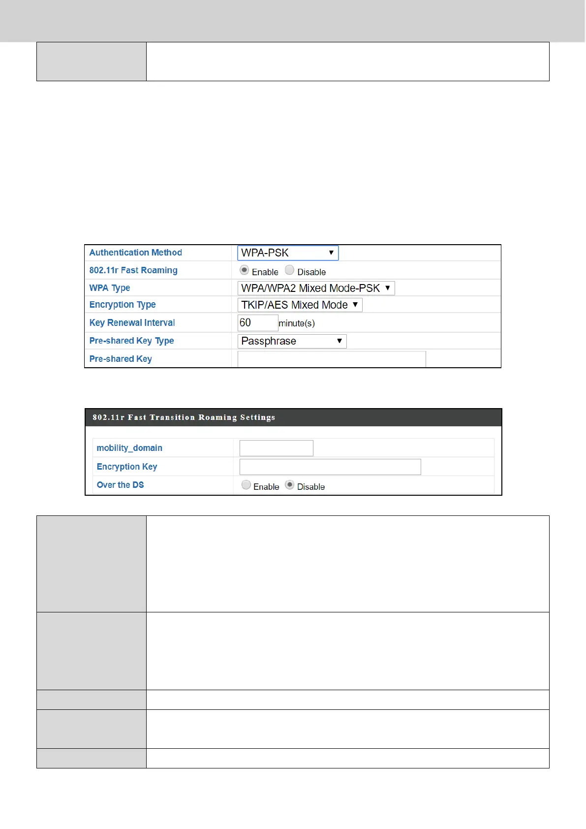 Fast Roaming Settings will also be shown: