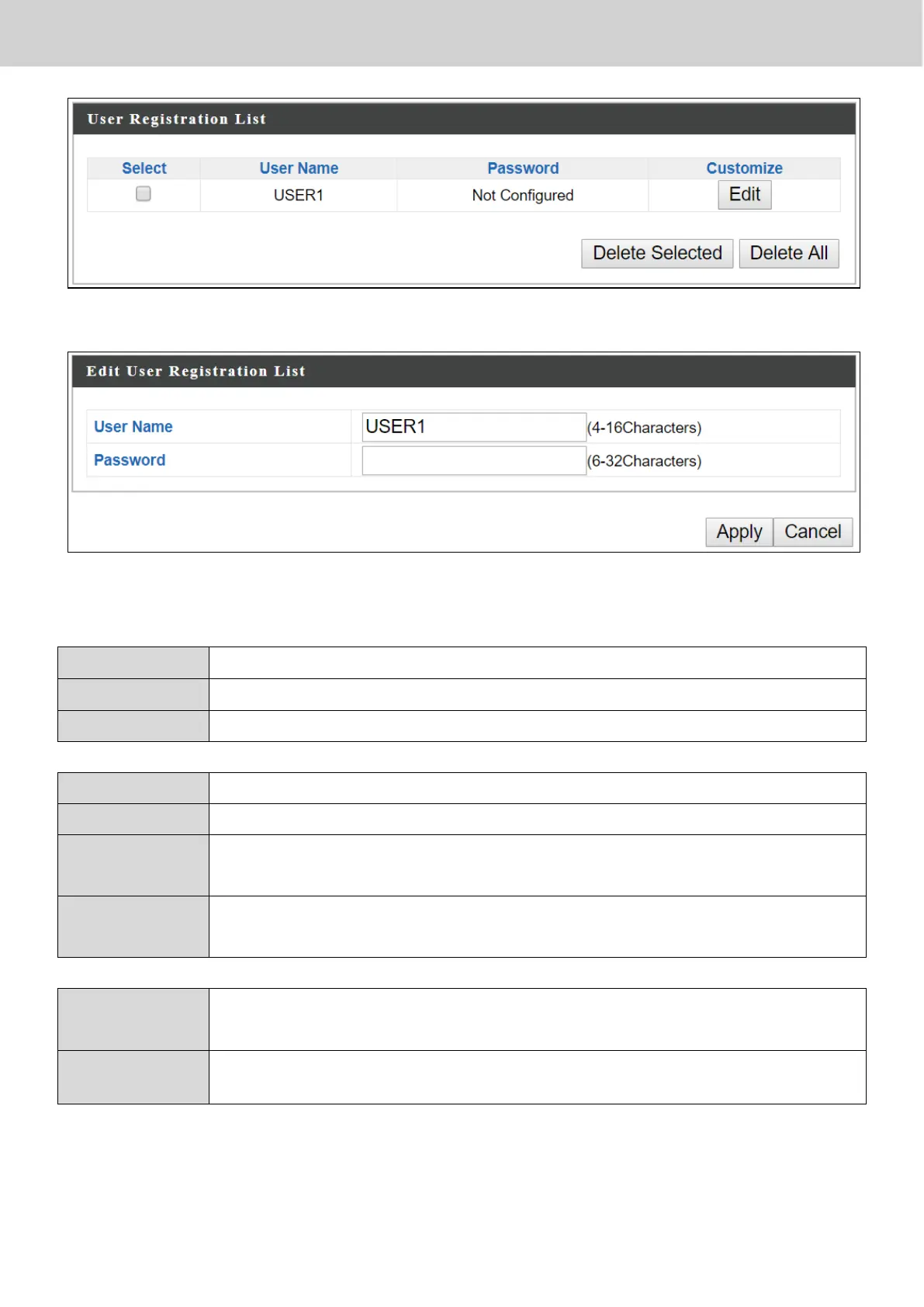 Delete selected user from the user registration list.