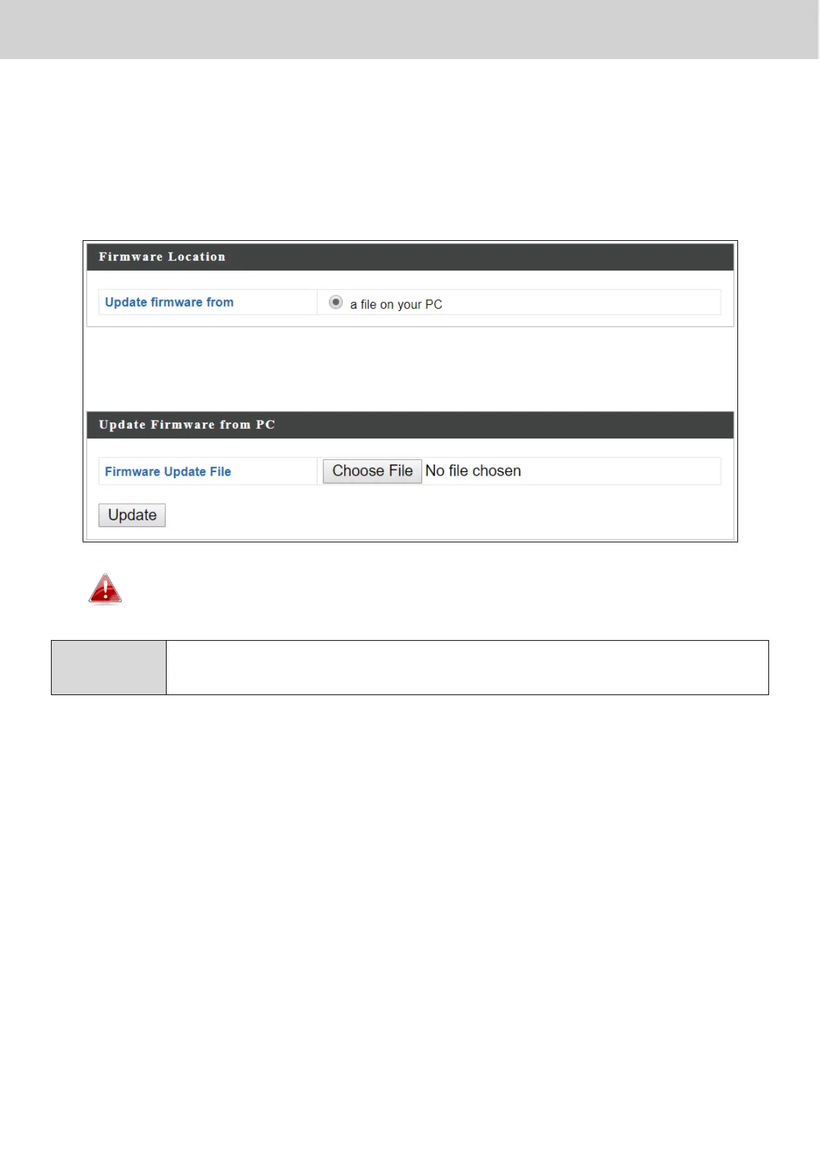 Click “Choose File” to upload firmware from your local computer.