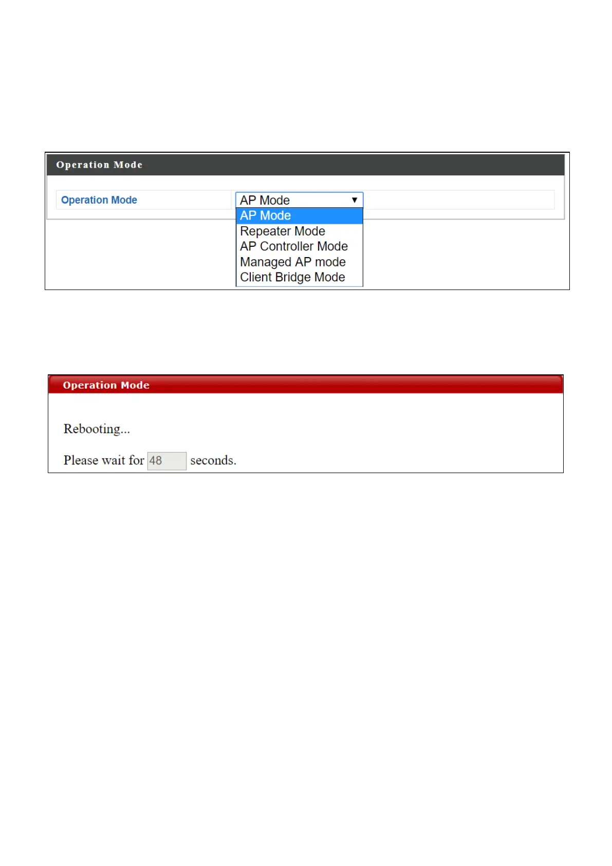 1. Select Managed AP Mode from the operation mode drop down menu: