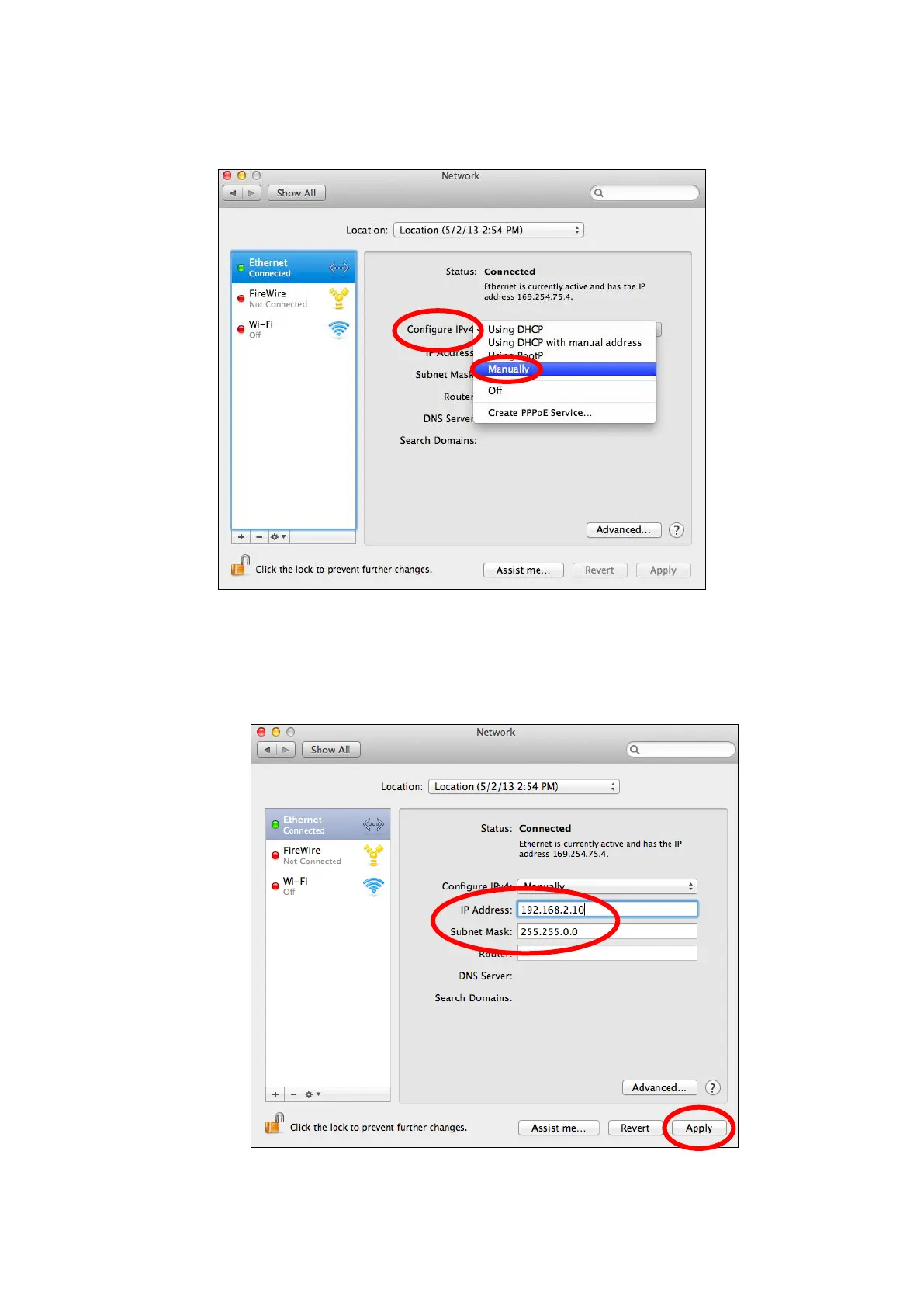5. Enter the IP address 192.168.2.10 and subnet mask 255.255.255.0.