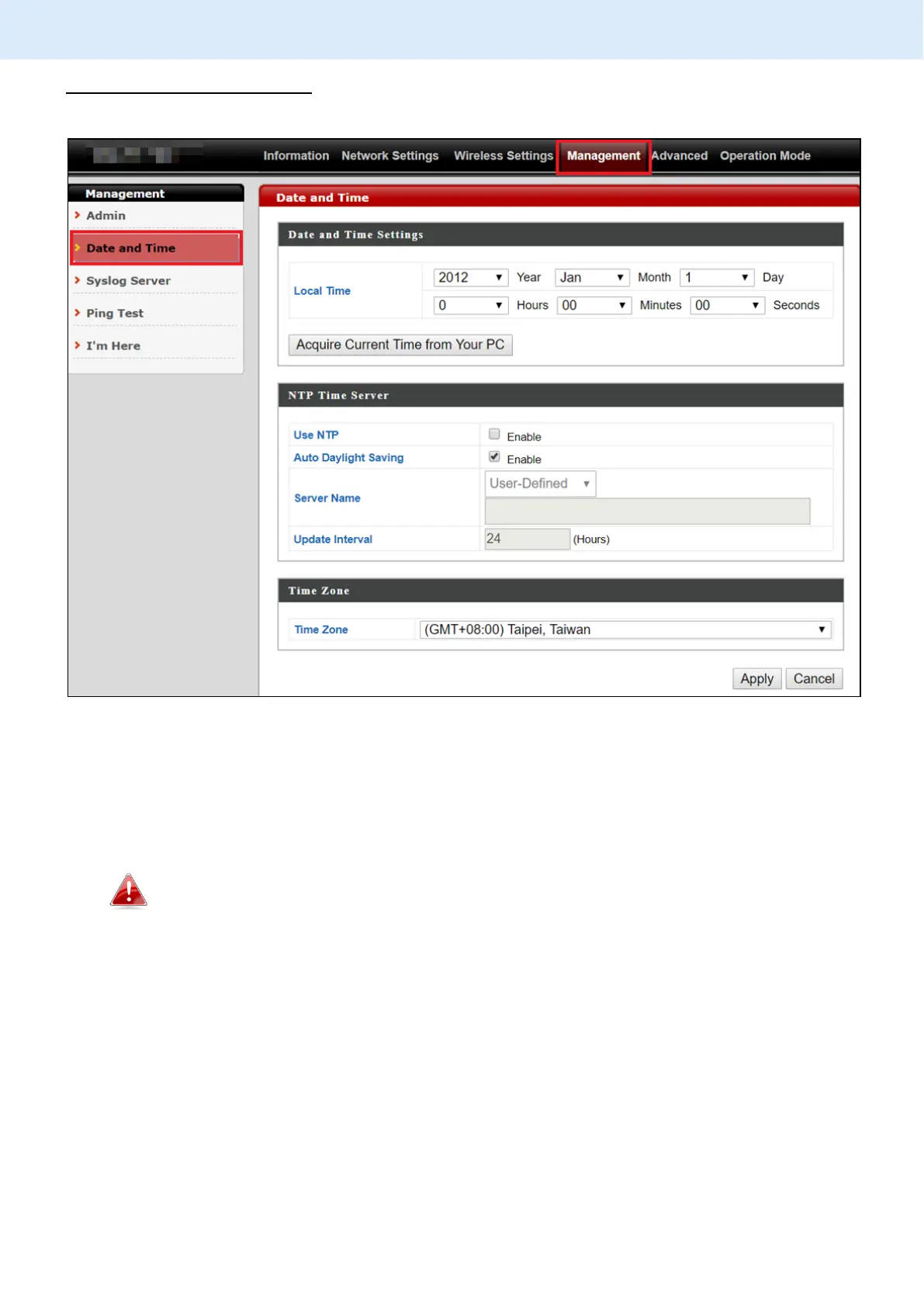 1. Go to “Management” > “Date and Time”.