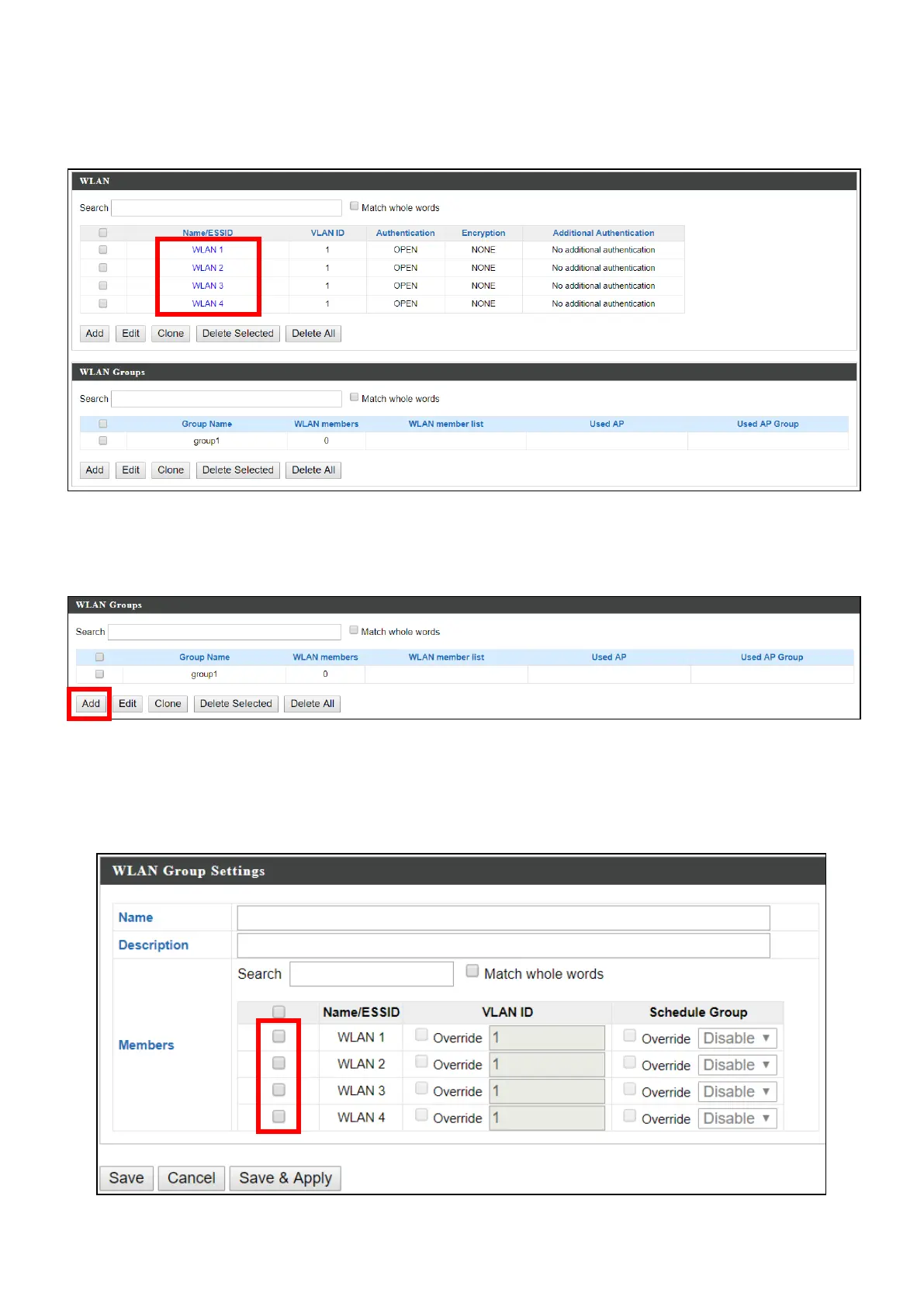 4. Click “Add” in the WLAN Groups panel:
