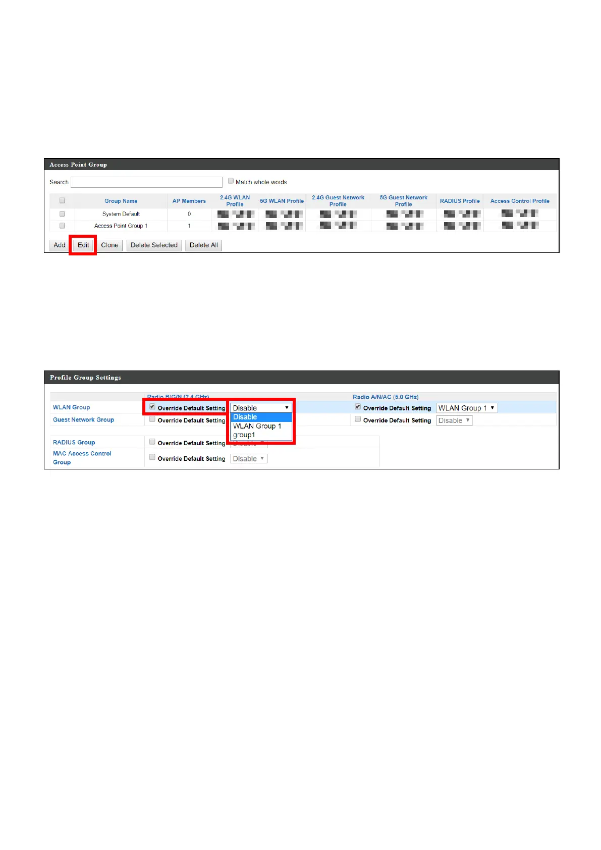 using the checkboxes in the Access Point Group panel. Click “Edit”: