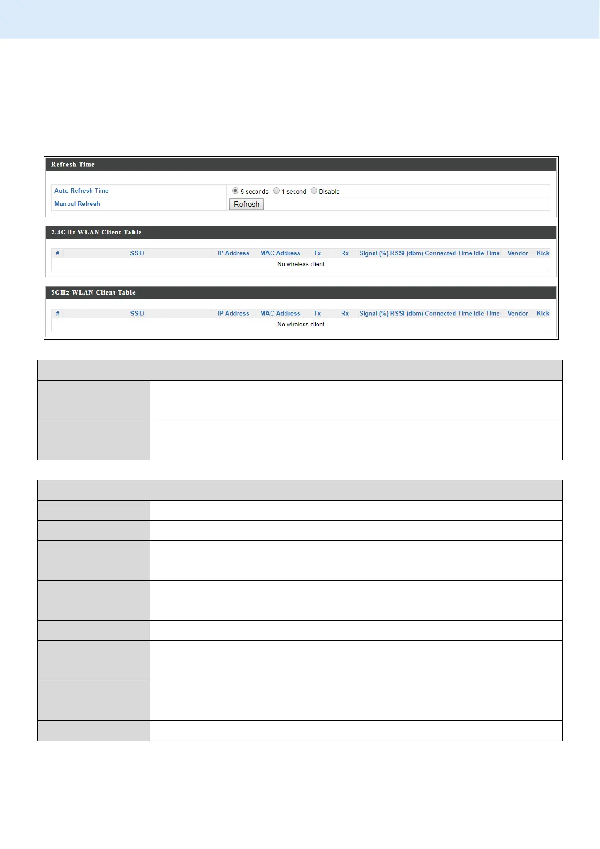 2.4GHz (5GHz) WLAN Client Table