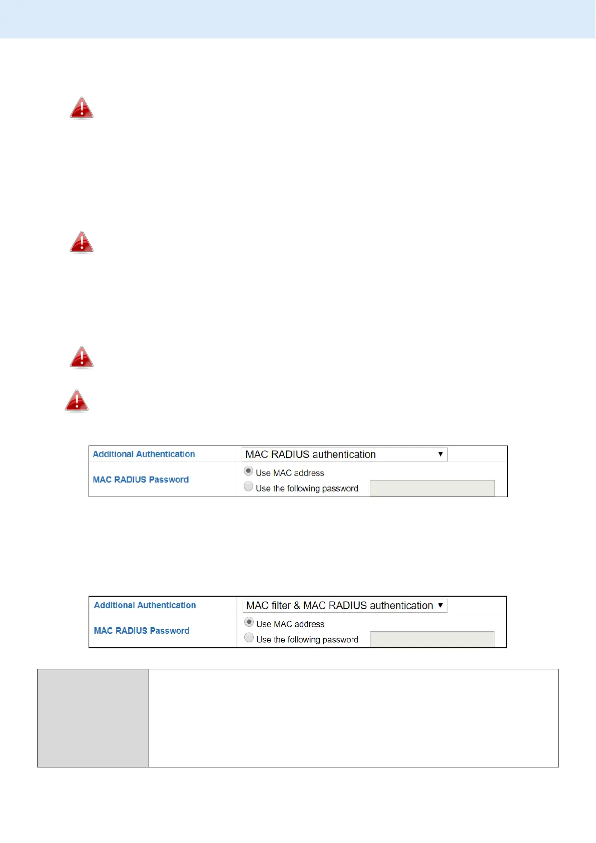 WPS must be disabled to use MAC-RADIUS authentication. See VI-3-5