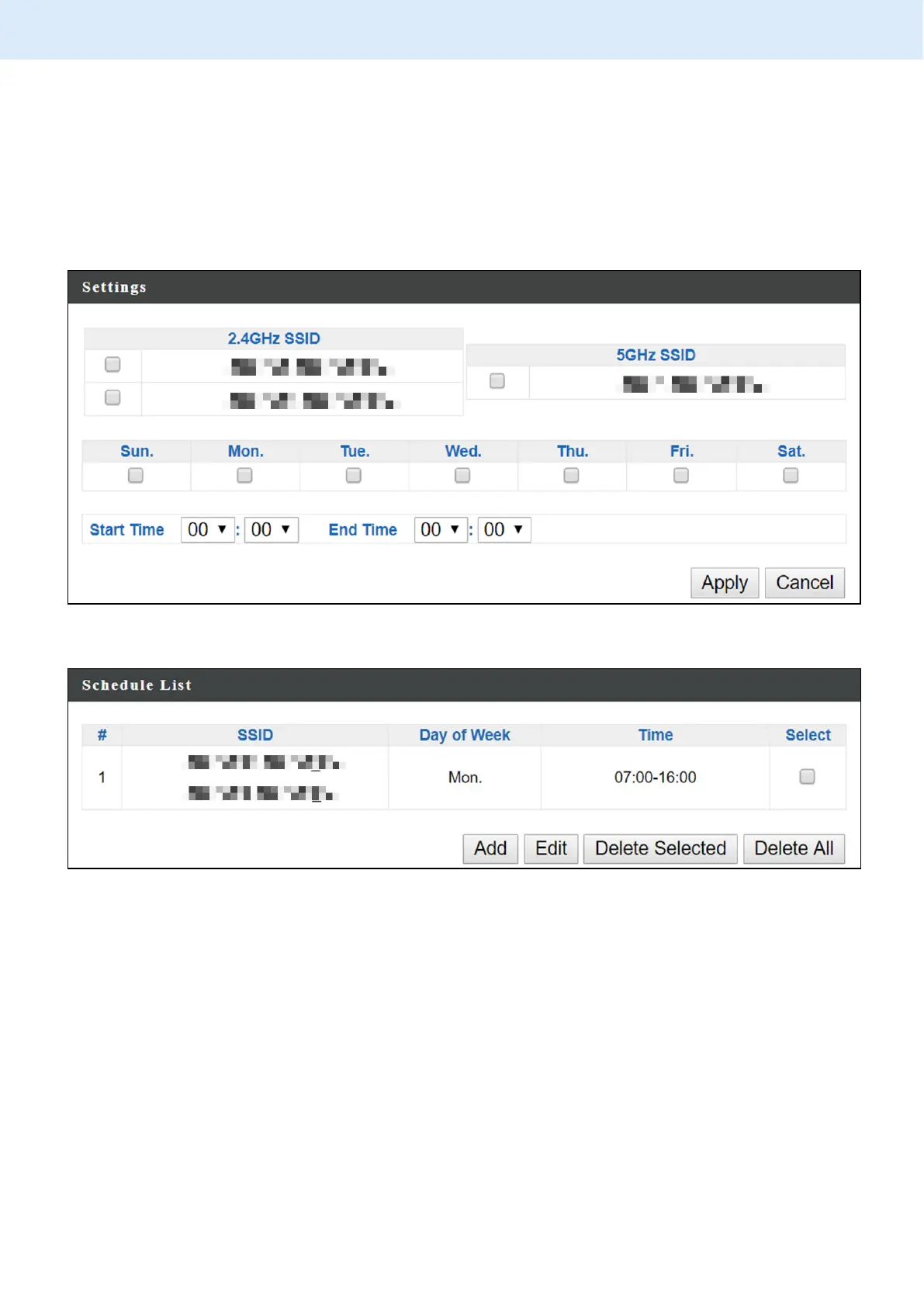 Select “Apply” to apply the settings, or “Cancel” to forfeit the schedule.