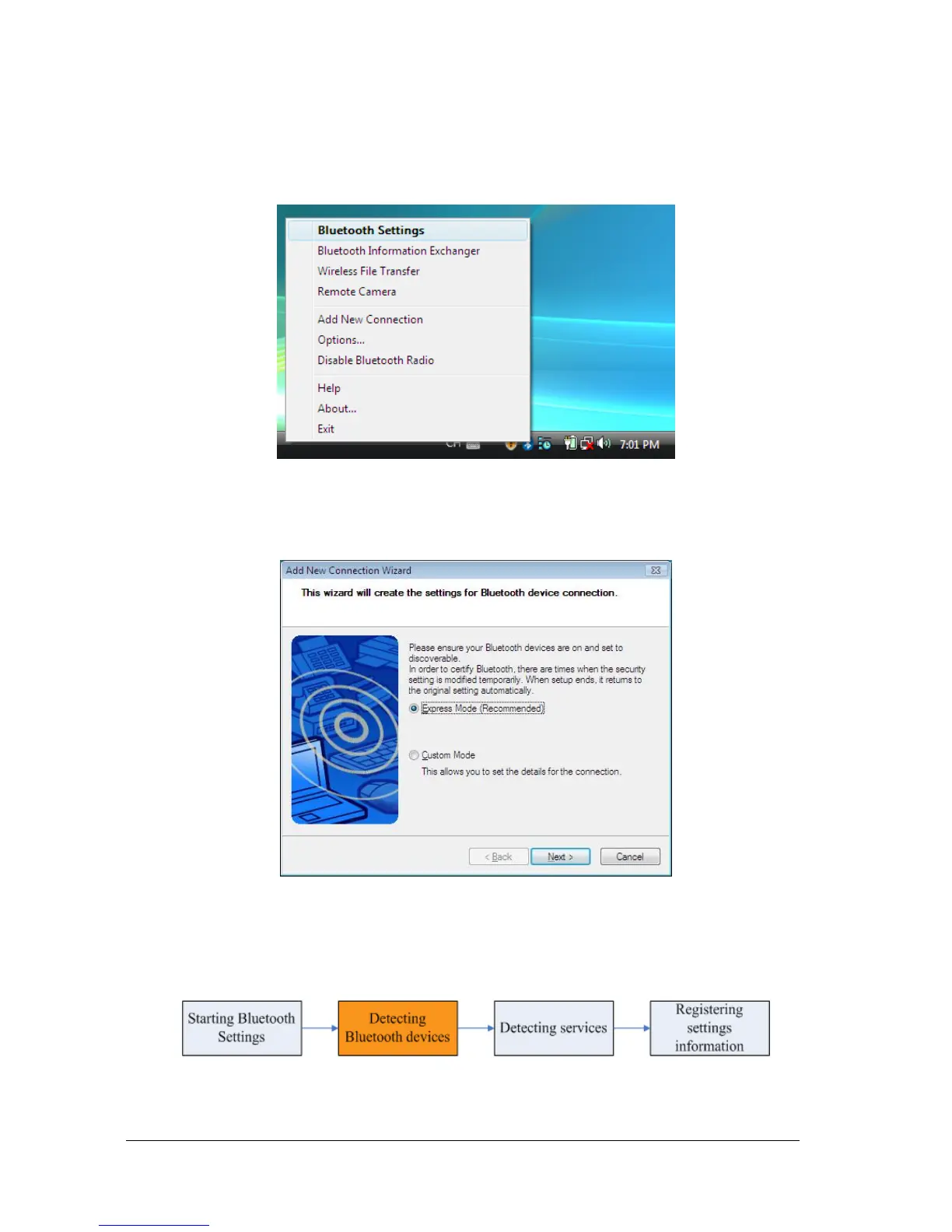 The same result can be achieved by right-clicking on the Bluetooth icon in the task tray and