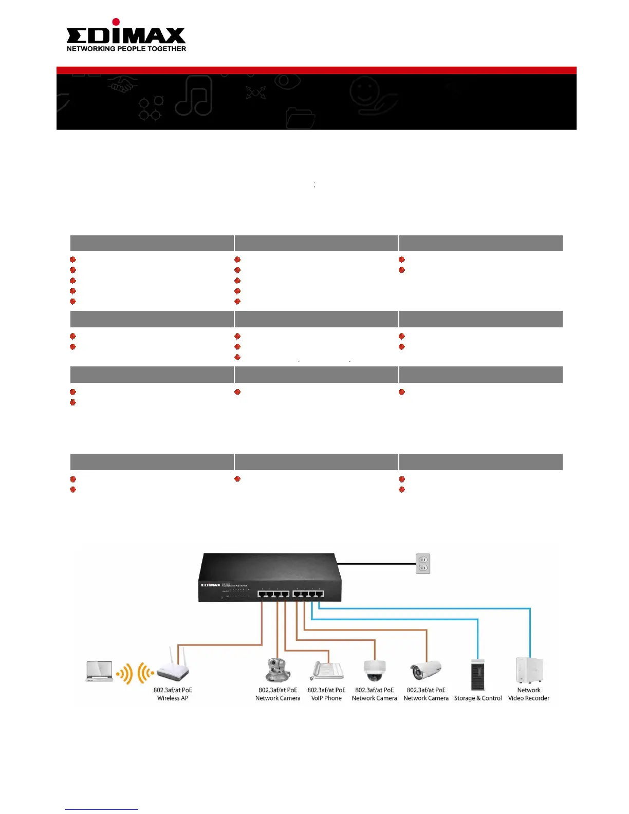 • ComplieswithIEEE802.3,802.3u,802.3x,802.3af,and802.3atstan