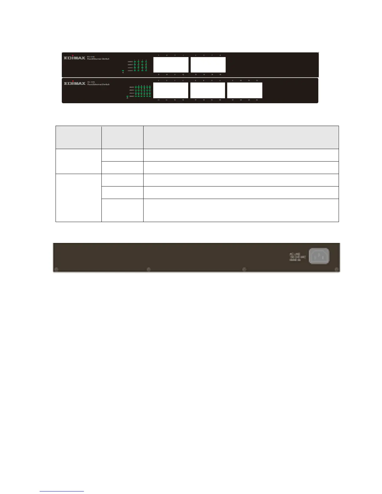 Edimax ES-1024 - Front Panel Components; LED Indicator Definitions; Back Panel Connections