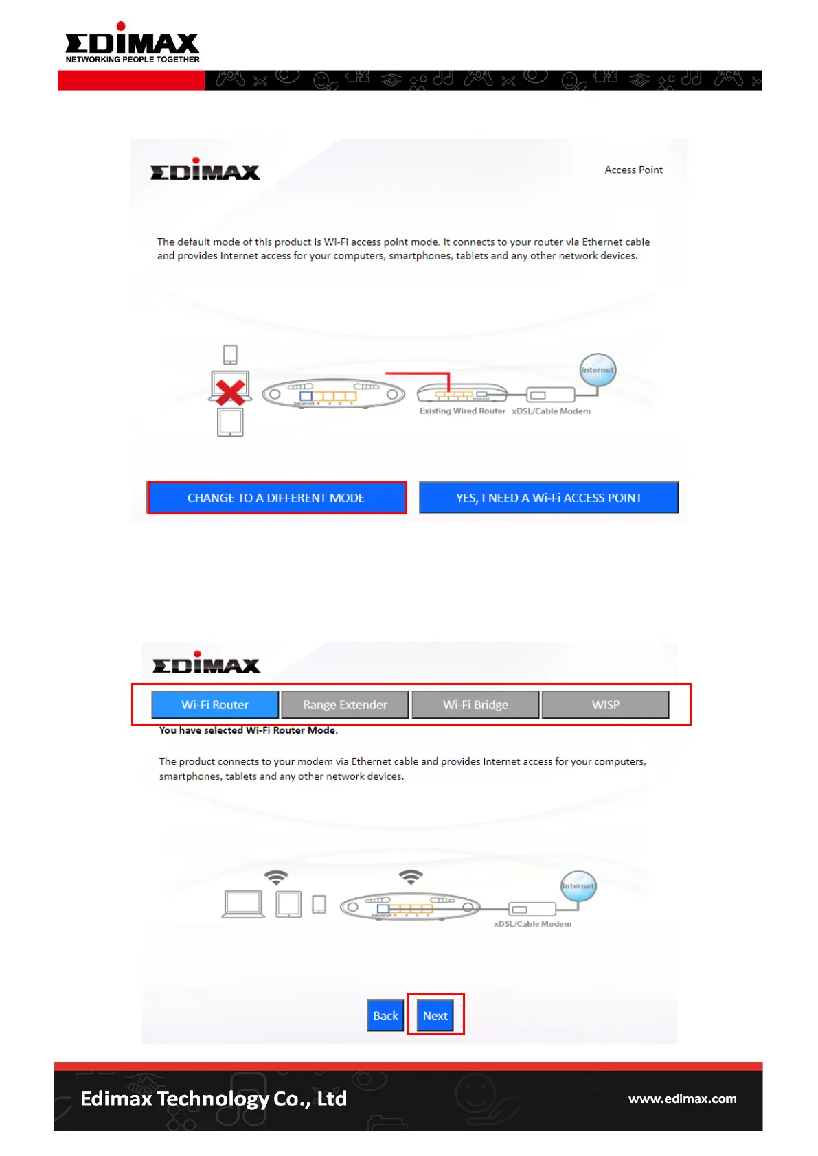 process. For more guidance about the steps on each mode, please look up the EW-7478APC user