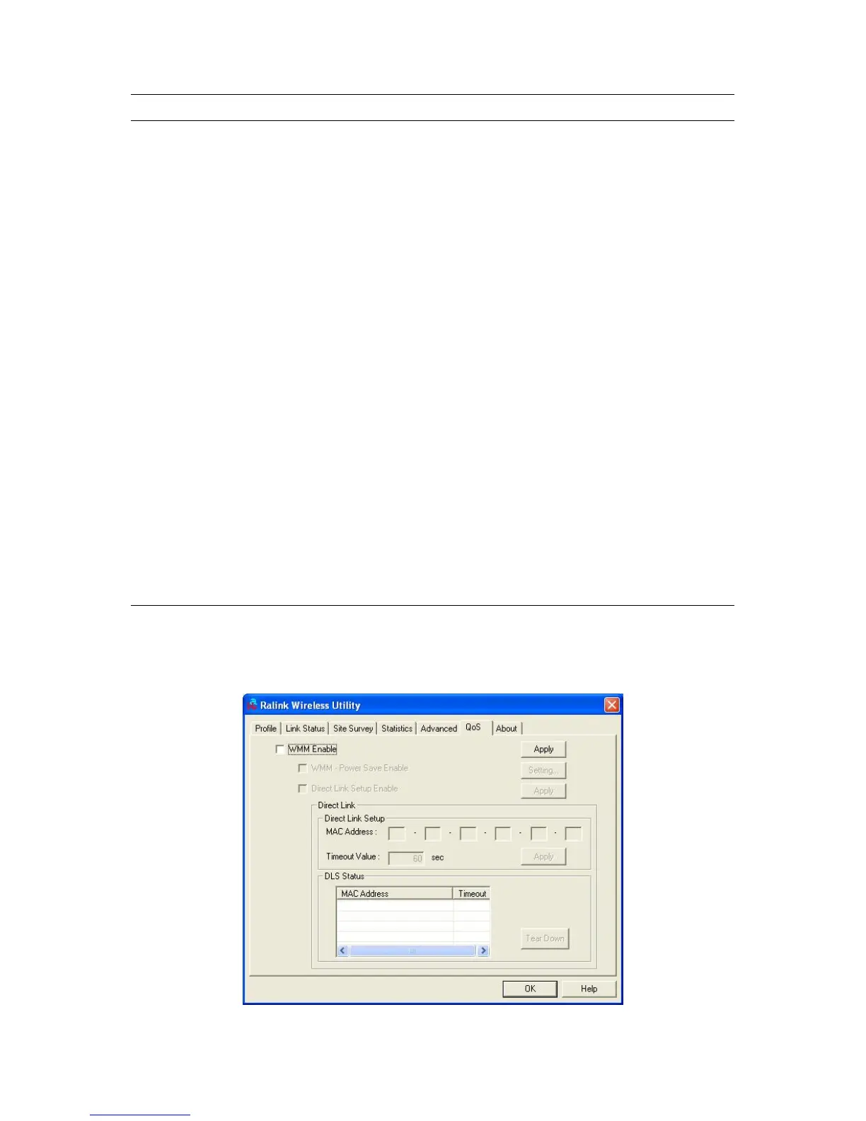This option enables you to configure QoS settings, for example: WMM, WMM - Power Save and Direct