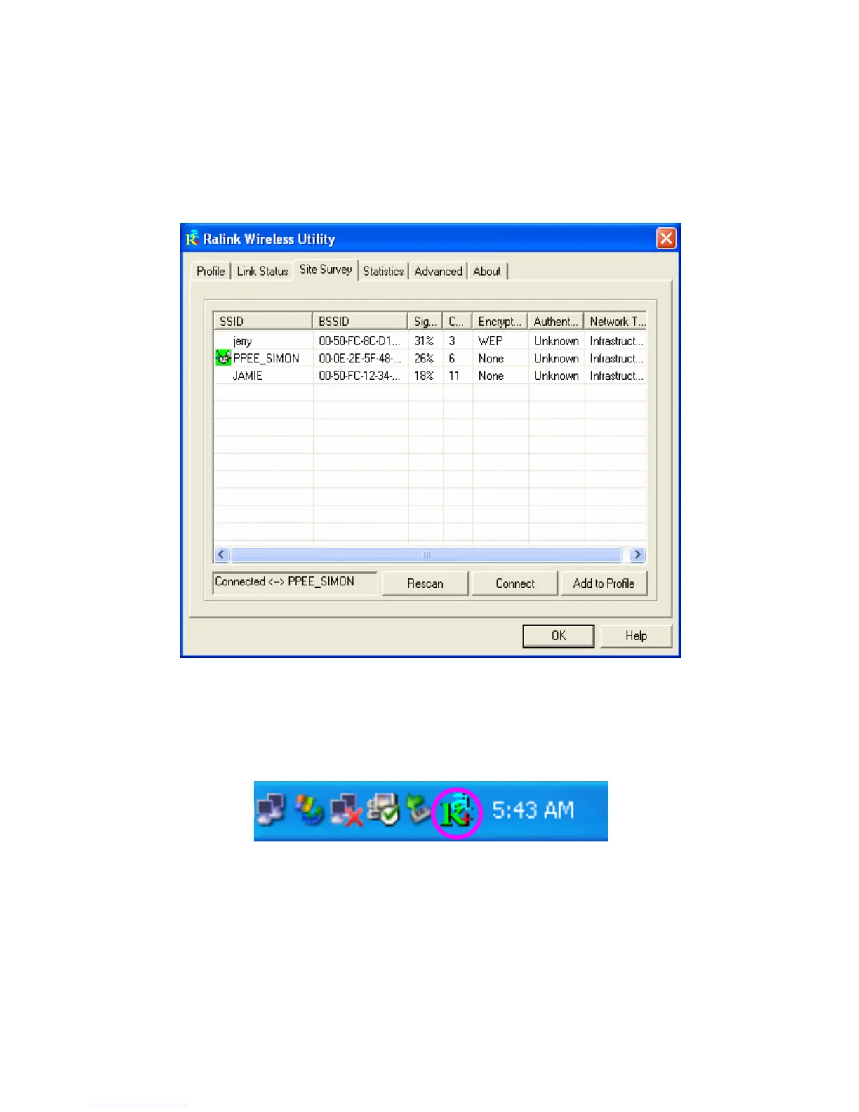 When the adaptor is installed, the Ralink configuration utility will