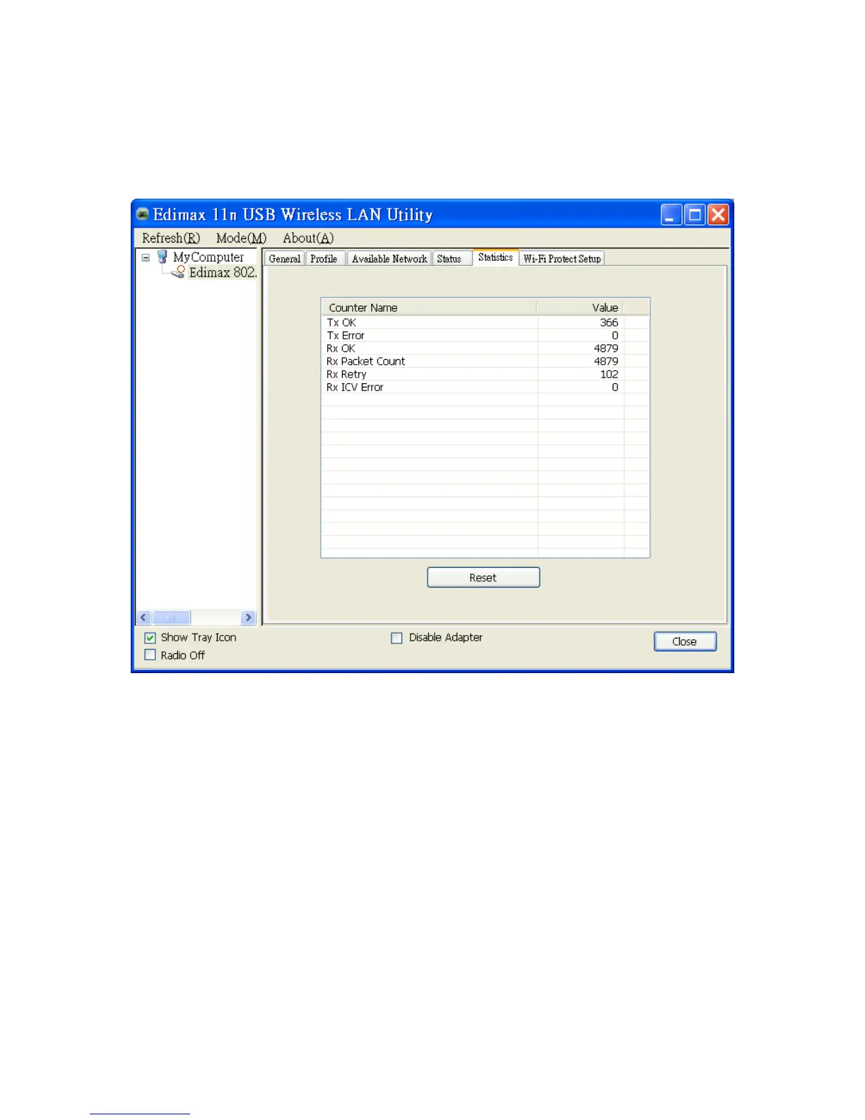 wireless communication from the screen. If you want to recount the statistics value, please click