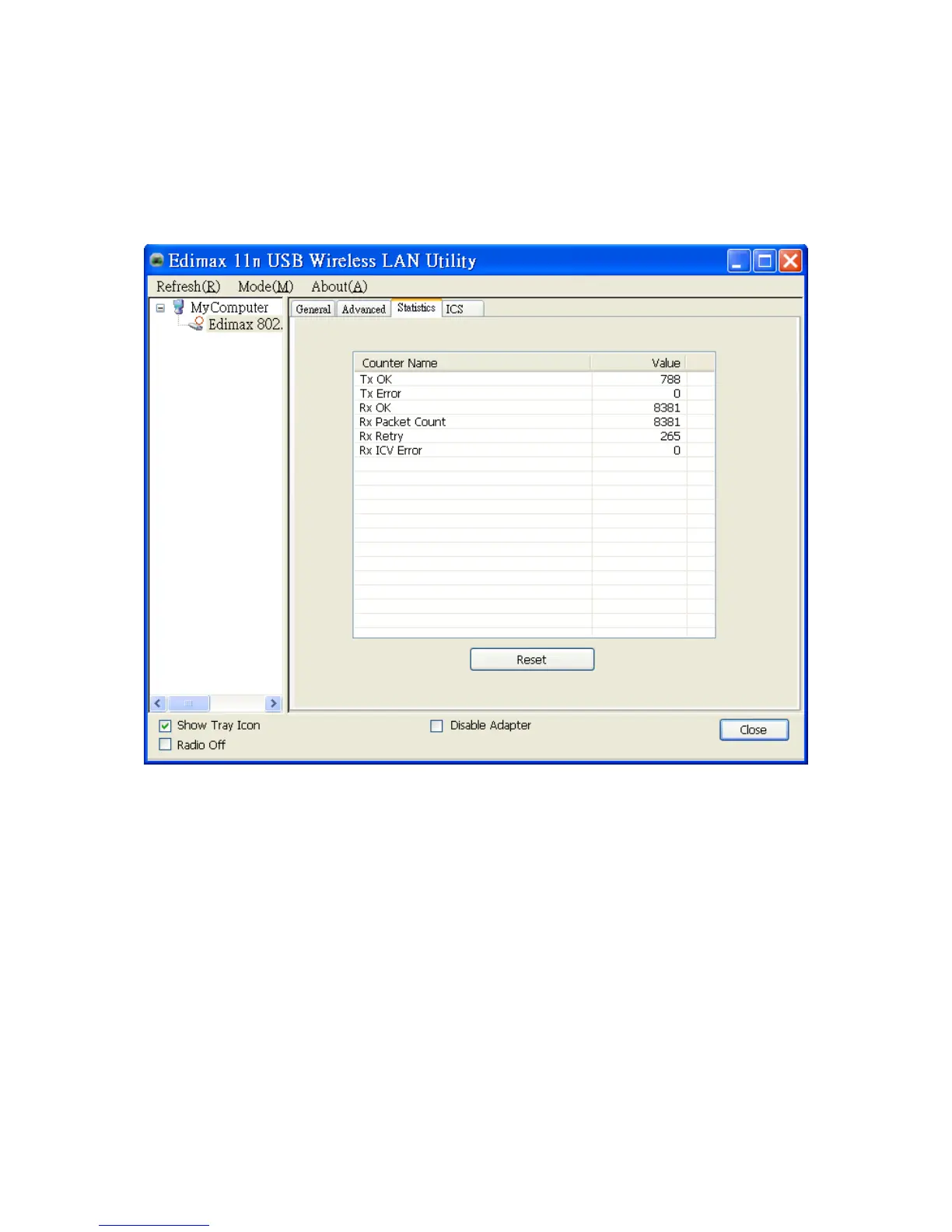 wireless communication from the screen. If you want to recount the statistics value, please click