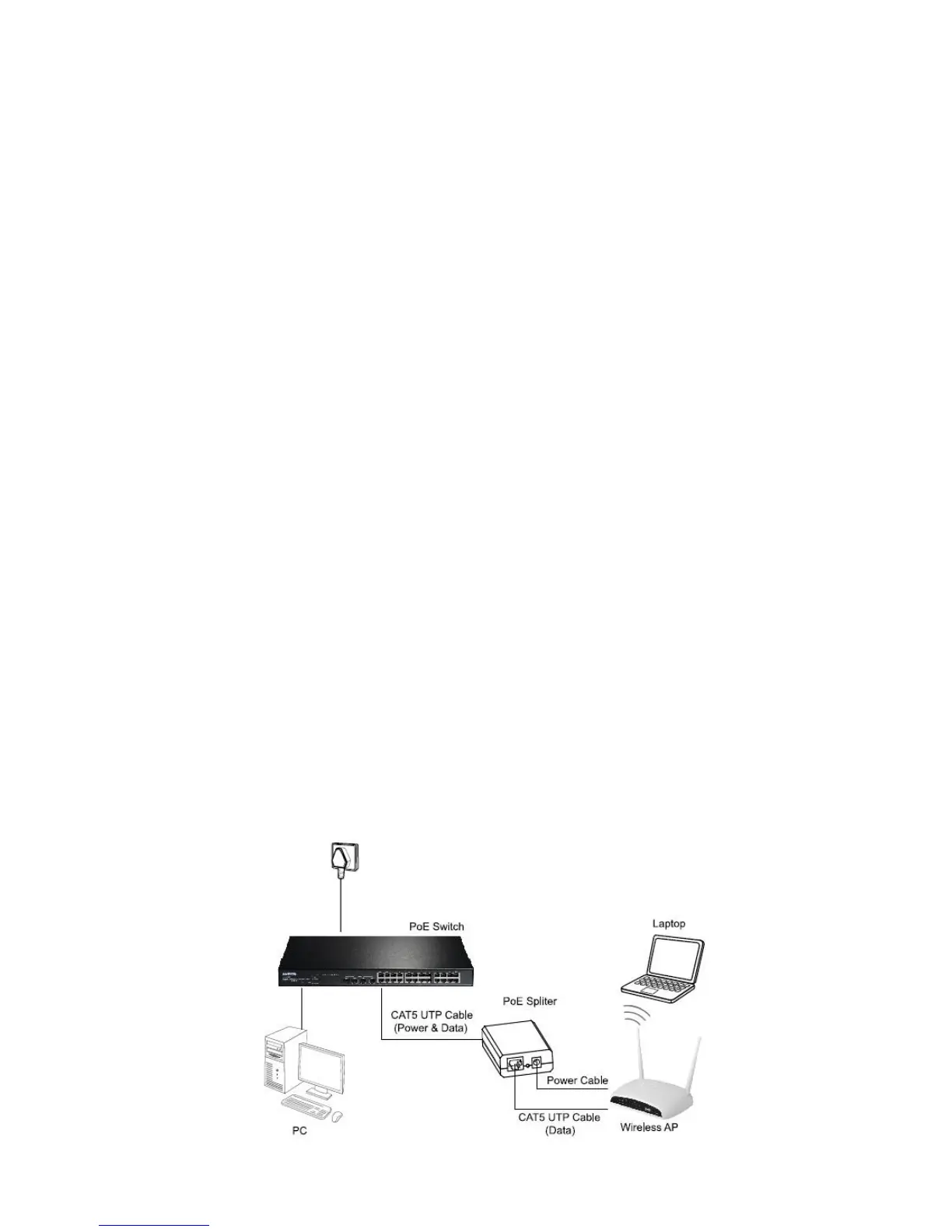1. Use a CAT5 UTP cable to connect a PoE port of the PSE (ex.PoE Switch) to the