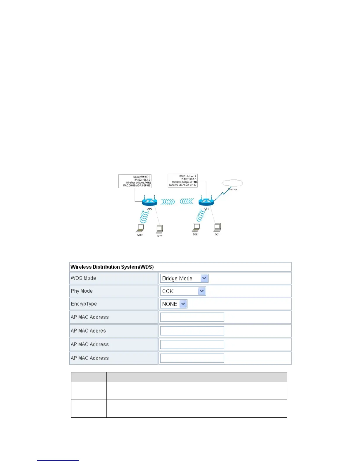 Mode, set the same phy mode and encryp type with the peer AP, and