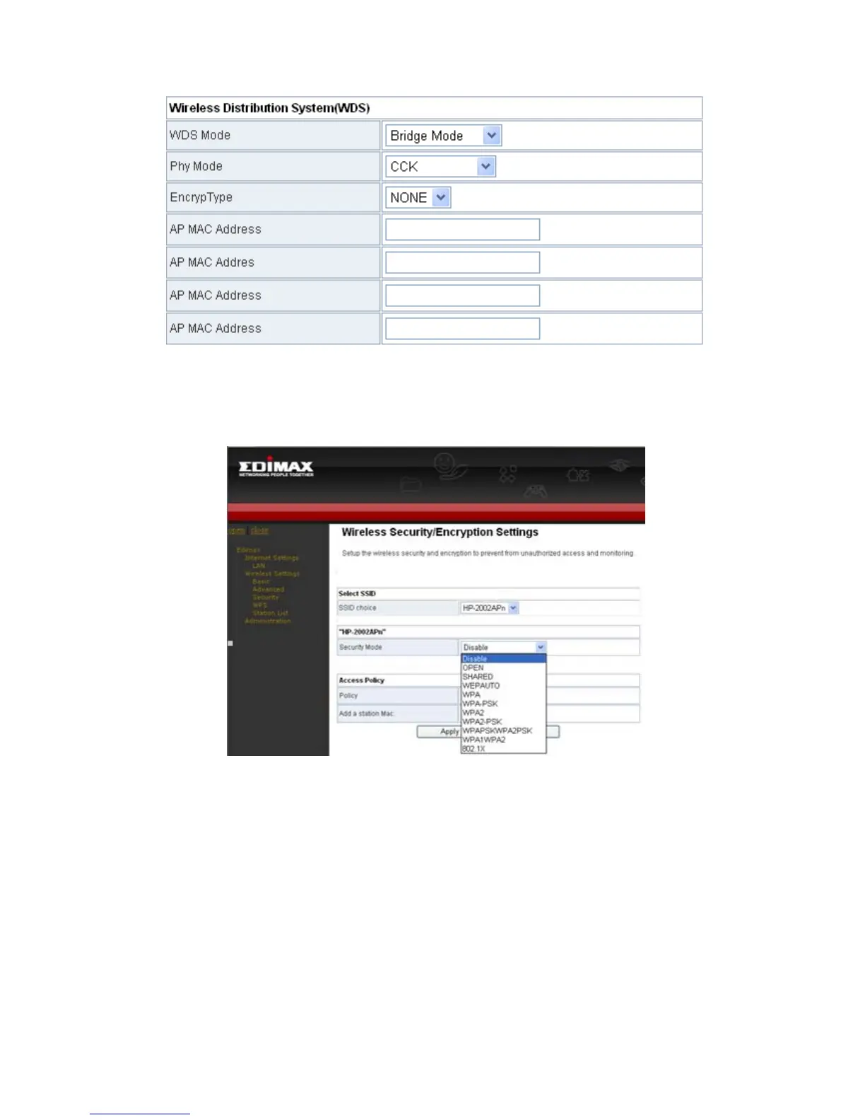 Note: In the WDS mode, don’t set any mixed modes, for example,