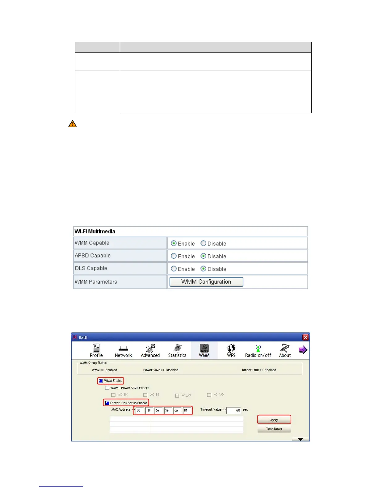 devices. Enter the MAC address of a WMM device in the DLS setting of the
