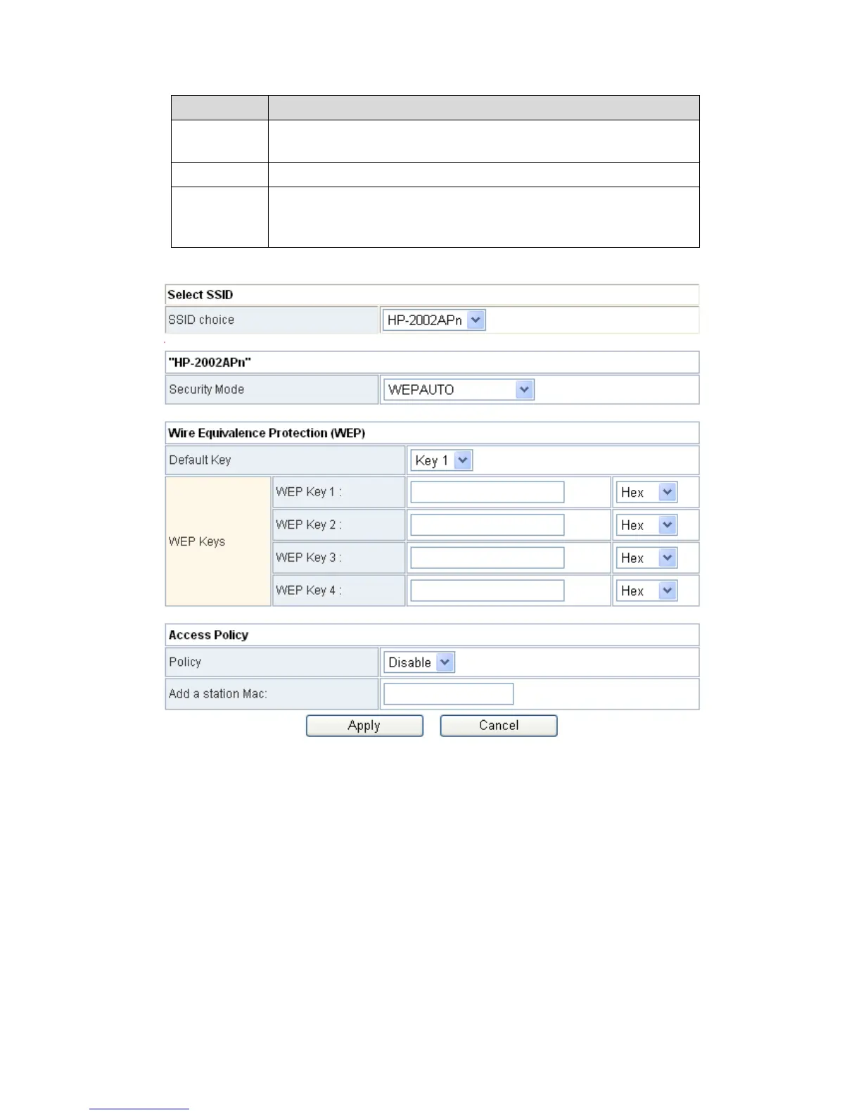 Set 64-bit or 128-bit key. The key format is Hex or ASCII.