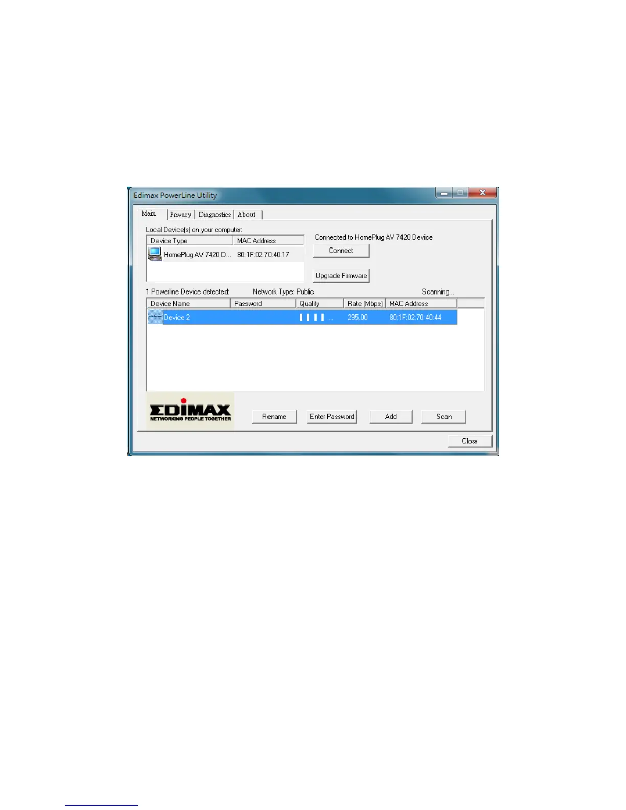 The“Main”tabprovidesalistoflocalorremotepowerlineadaptersinthenetwork.