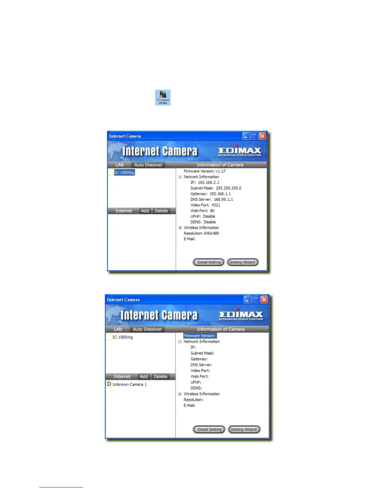 2. Click the “IP Camera Admin” icon