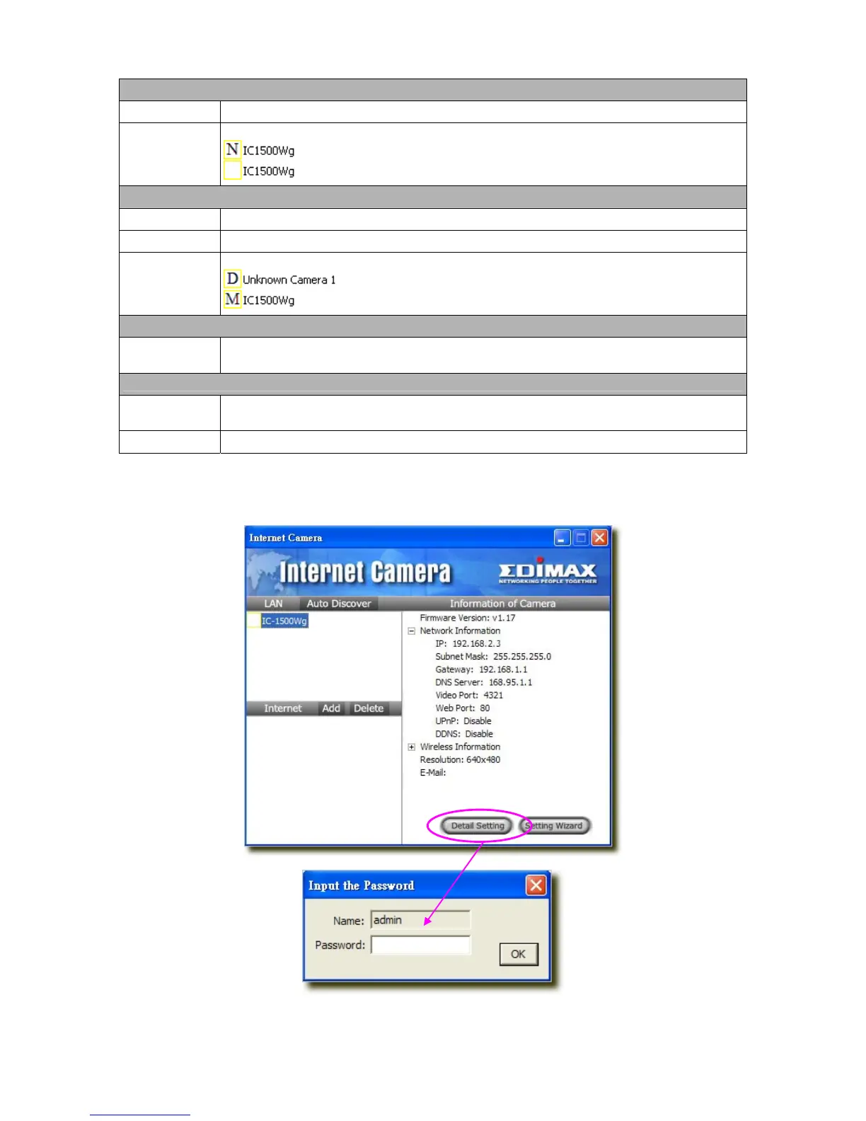 When you click the “Detail Setting”, a screen will pop up for you to enter the “Administrator Name” and “Password”.