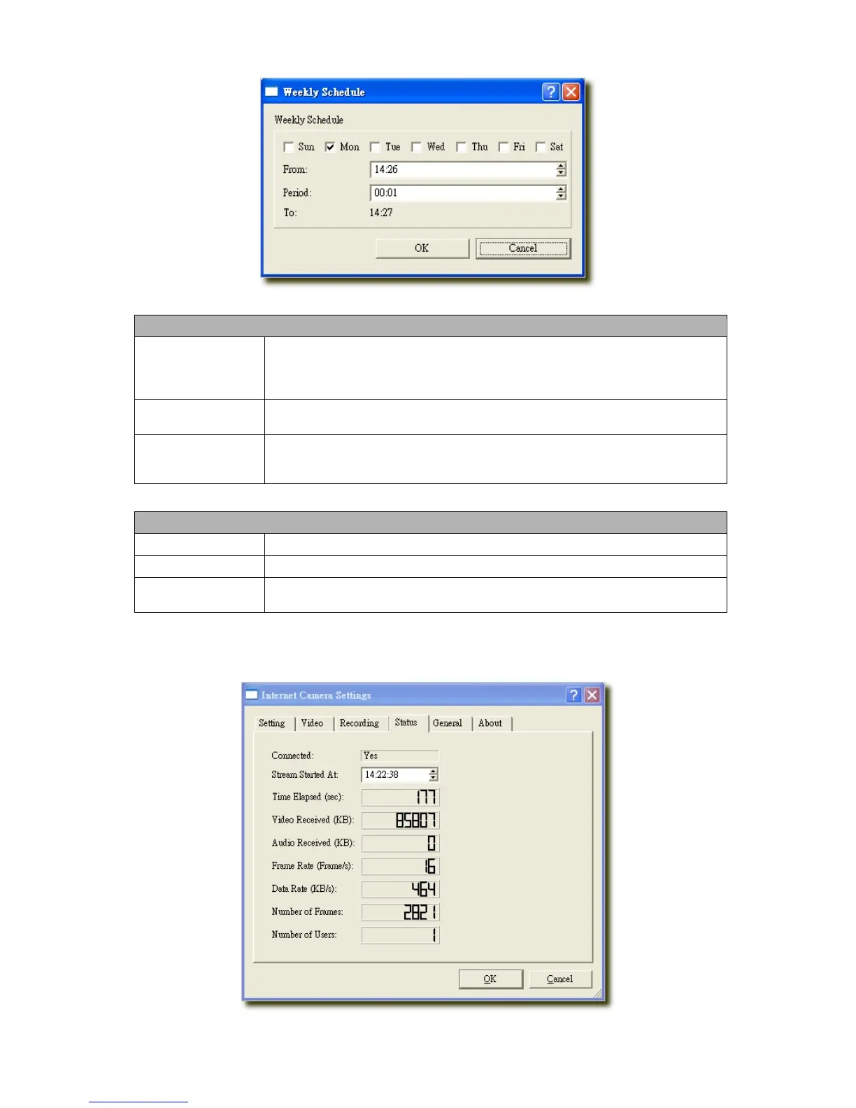 You can see the current status information of the connection session between the utility and the Internet Camera.