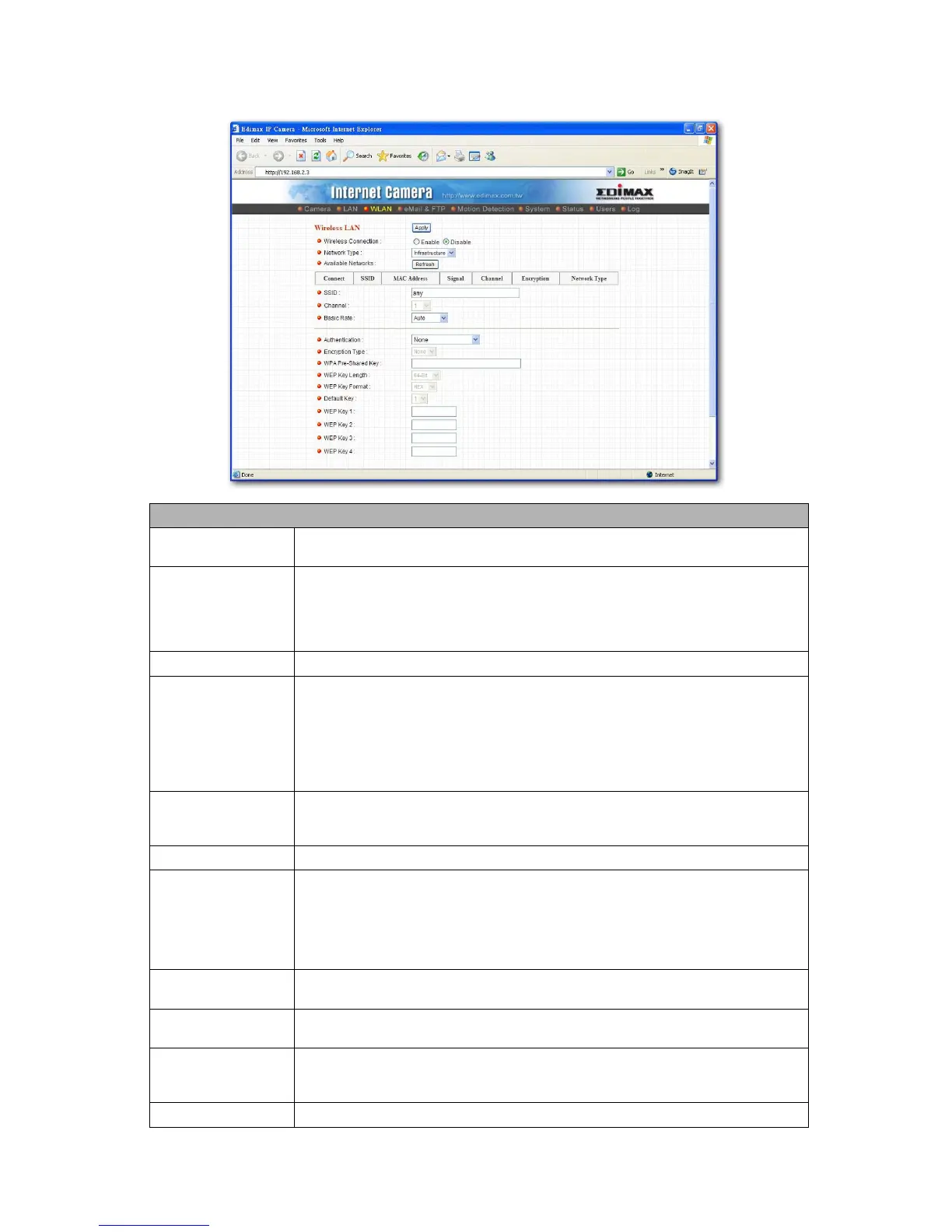 Enable or disable the wireless function of the Internet Camera. By default, the function