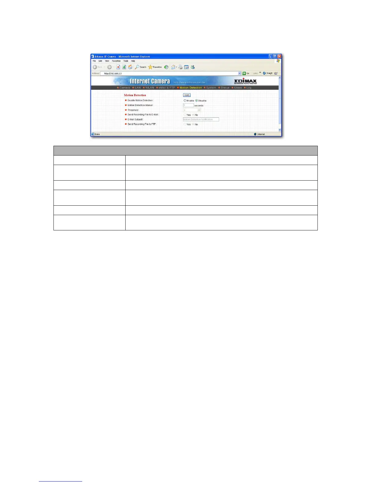 The “Motion Detection” allows users to setup the behavior of motion detection feature.