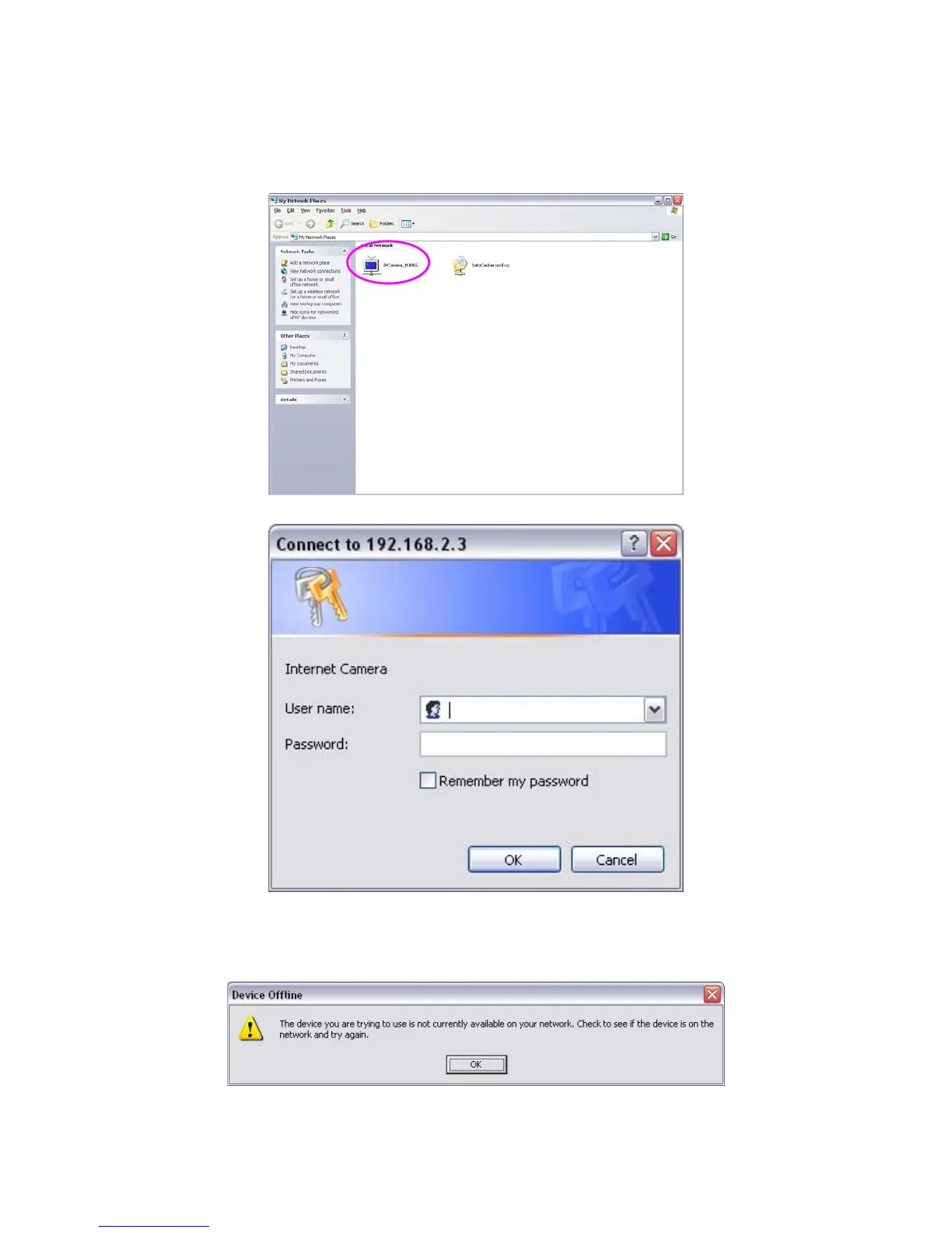 If you can’t find the camera in the Neighborhood of Windows XP SP2 or you have seen the following message when you
