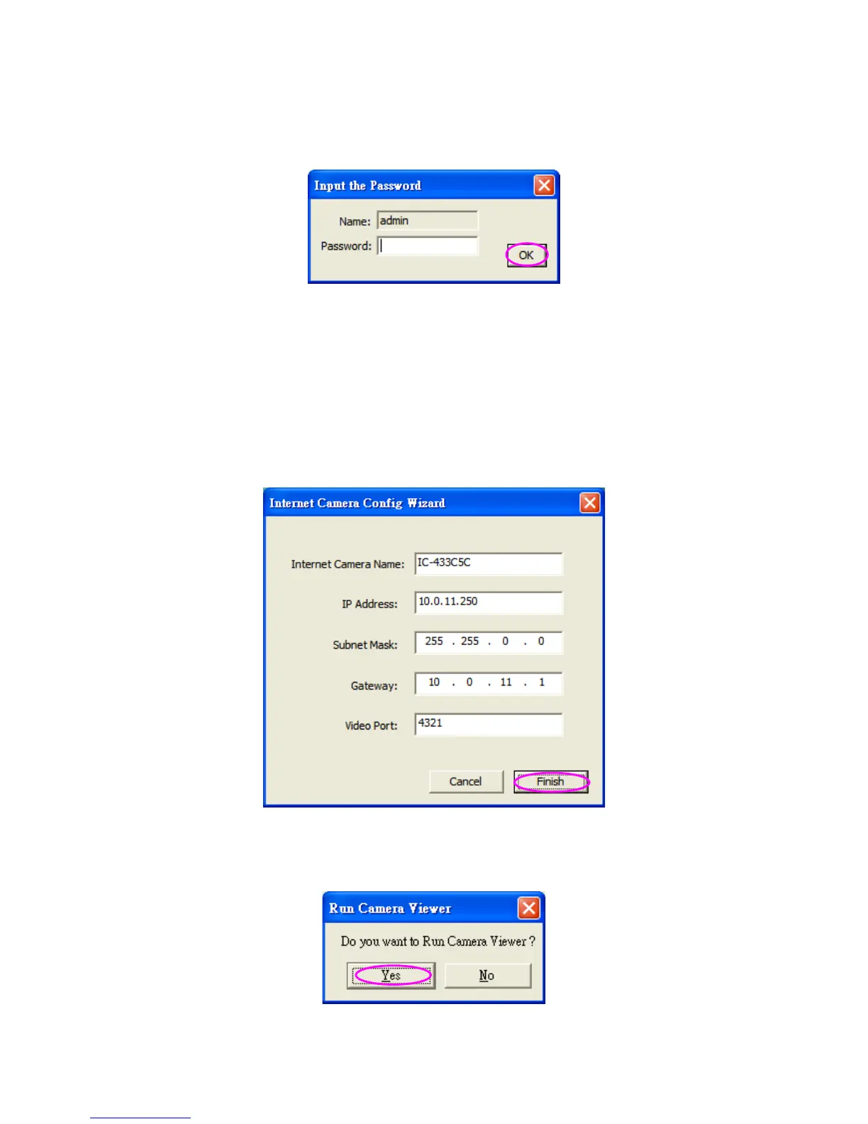 be the same for both the camera and the PC. Click “Finish” to apply the configuration.