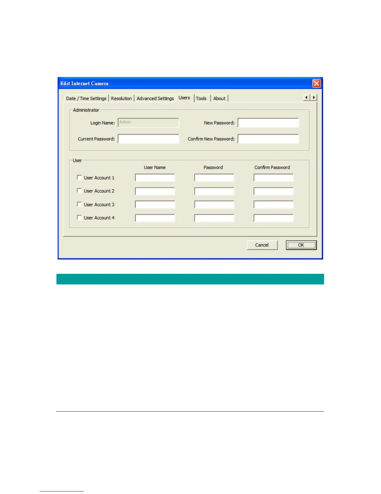 User Setting the user account and password. Your camera can support