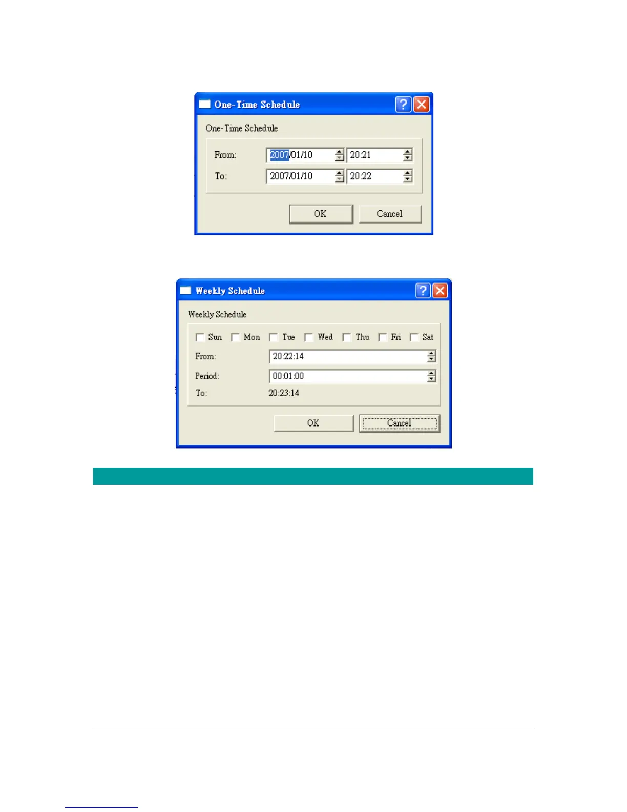 Weekly Schedule You can assign the days in a week and the period of time in a day
