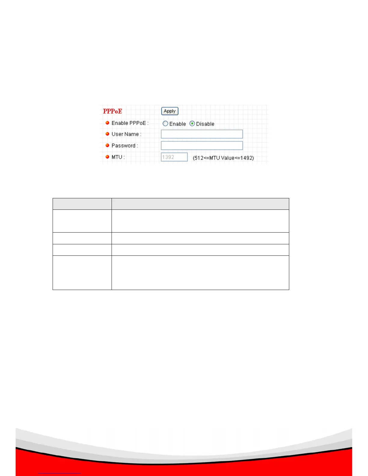 Enable PPPoE Select ‘Enable’ to activate PPPoE function of this IP