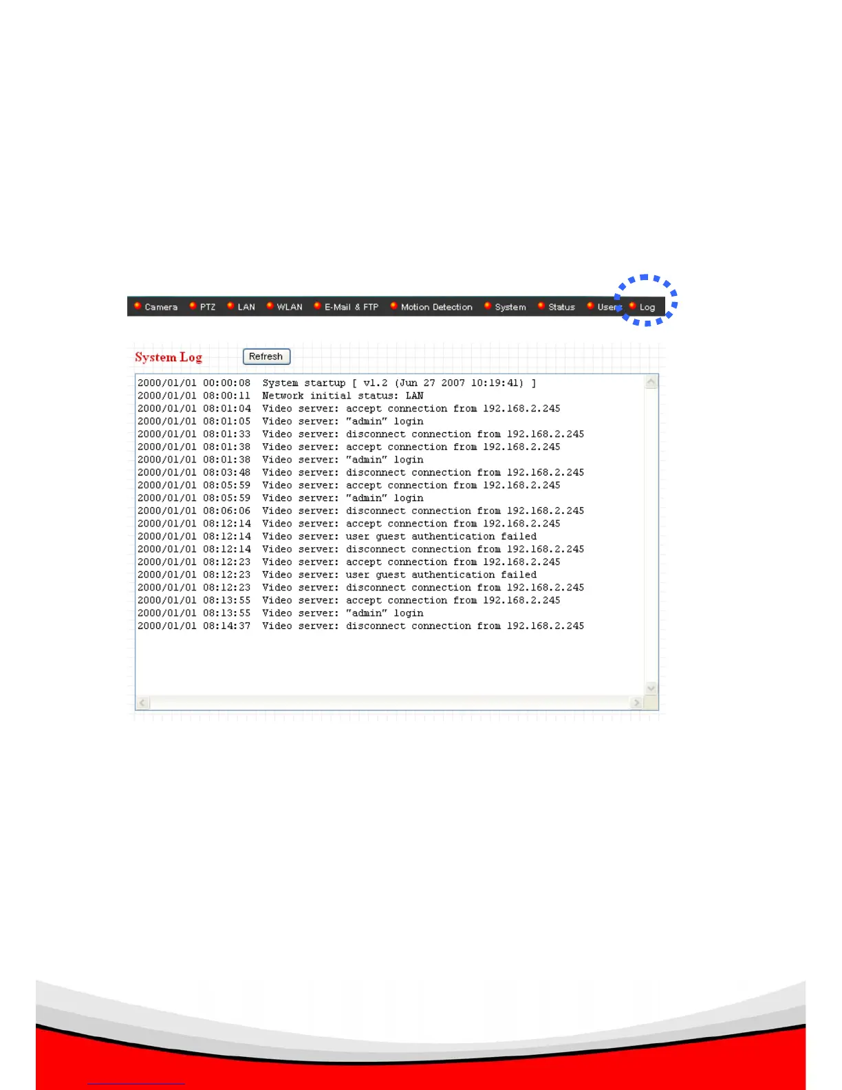 All activities of this IP camera will be logged, and you and enter ‘Log’ menu to view