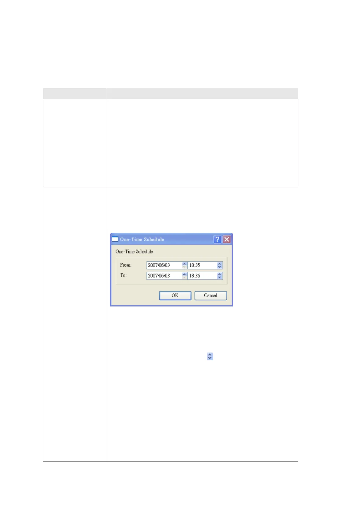 descriptions of every setting of one time schedule in this menu will be given below: