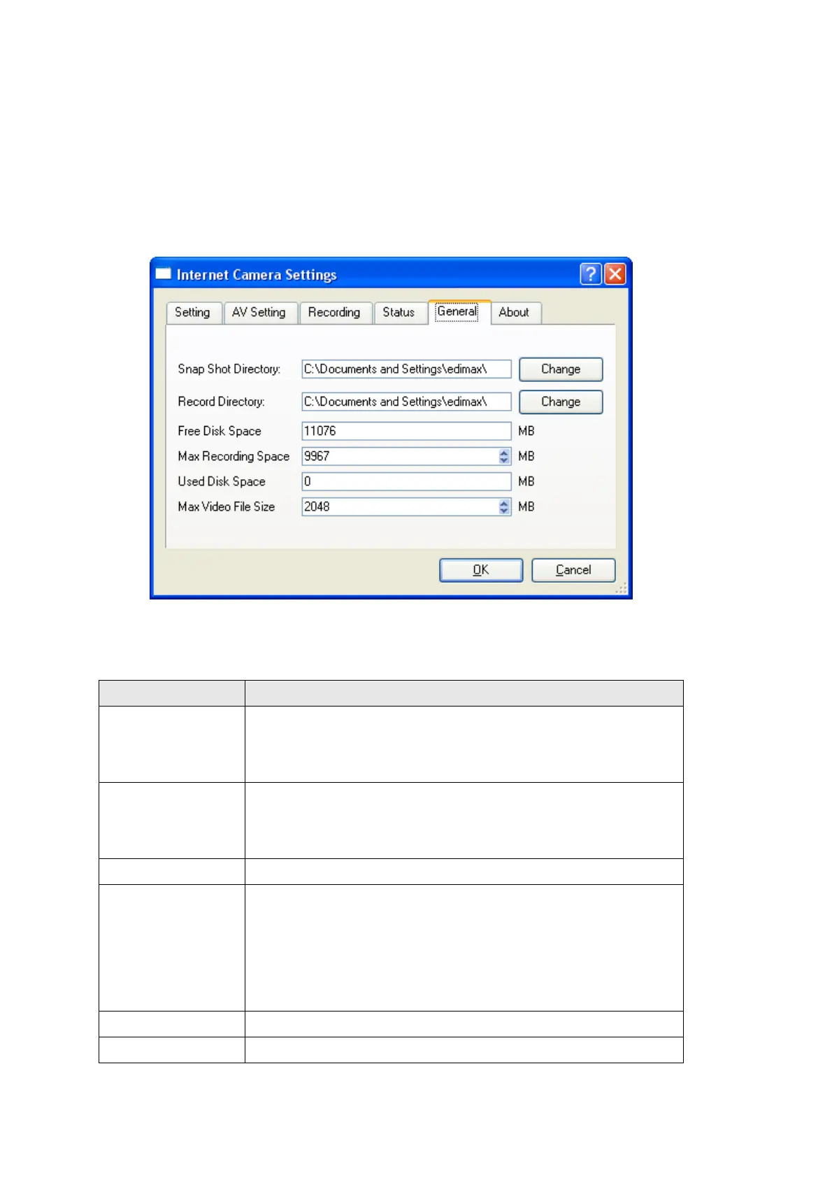 Record Directory Shows the directory (folder) used to store recorded video