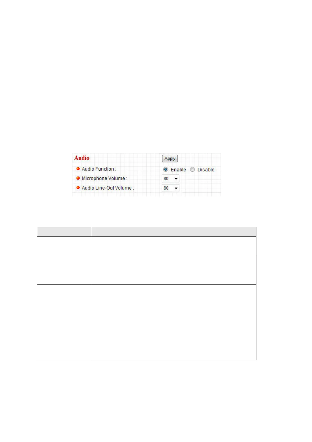 Audio Function Choose ‘Enable’ to enable audio function of this IP