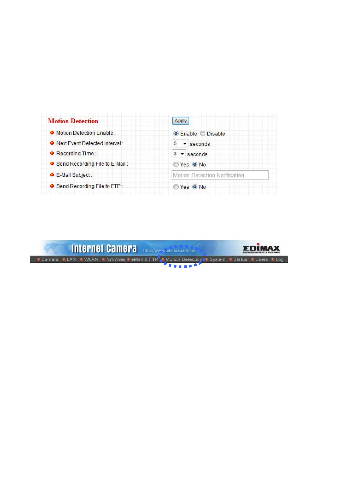 You can access this menu by clicking ‘Motion Detection’ on the top of web