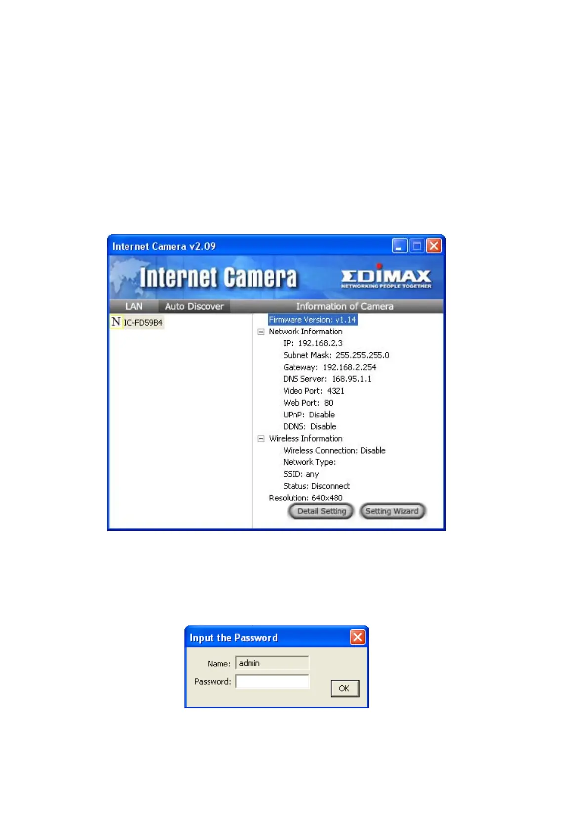 ‘Information of Camera’ section (right). You can click the ‘+’ sign at the left of ‘Network