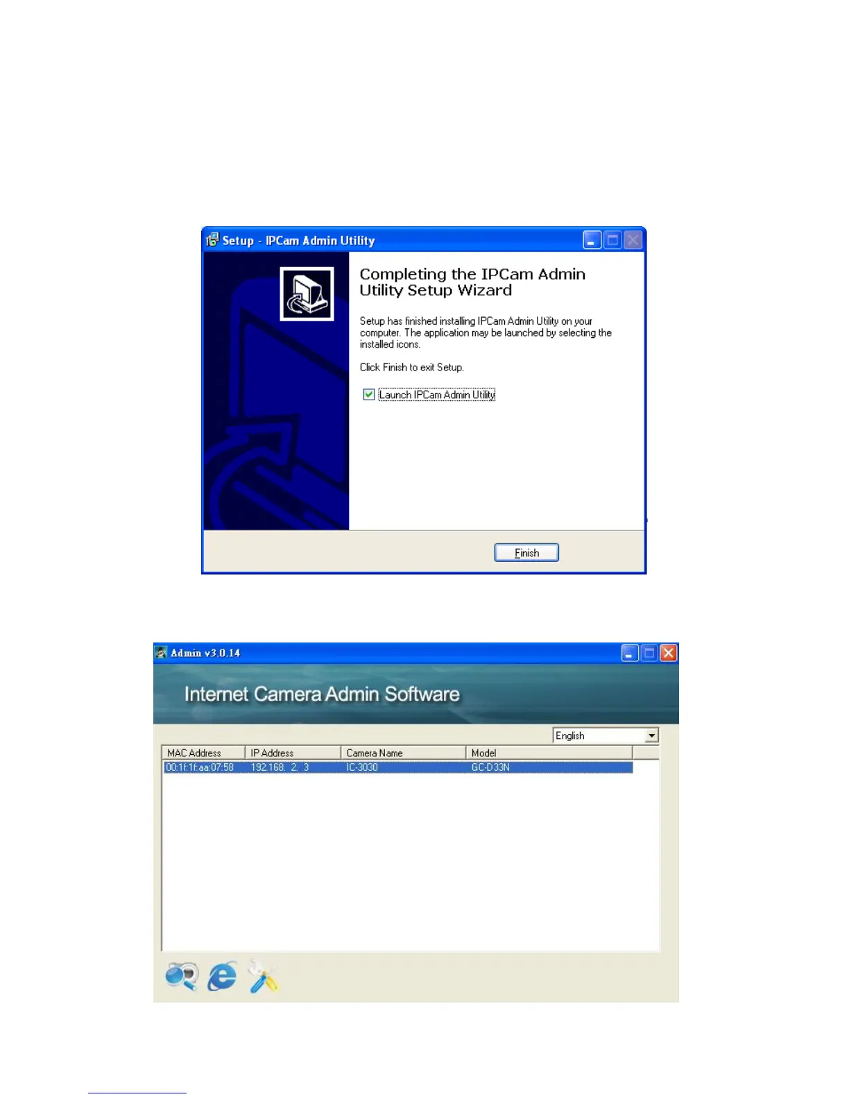 IP Cam Admin Utility‟ box checked, and click „Finish‟ to close installation