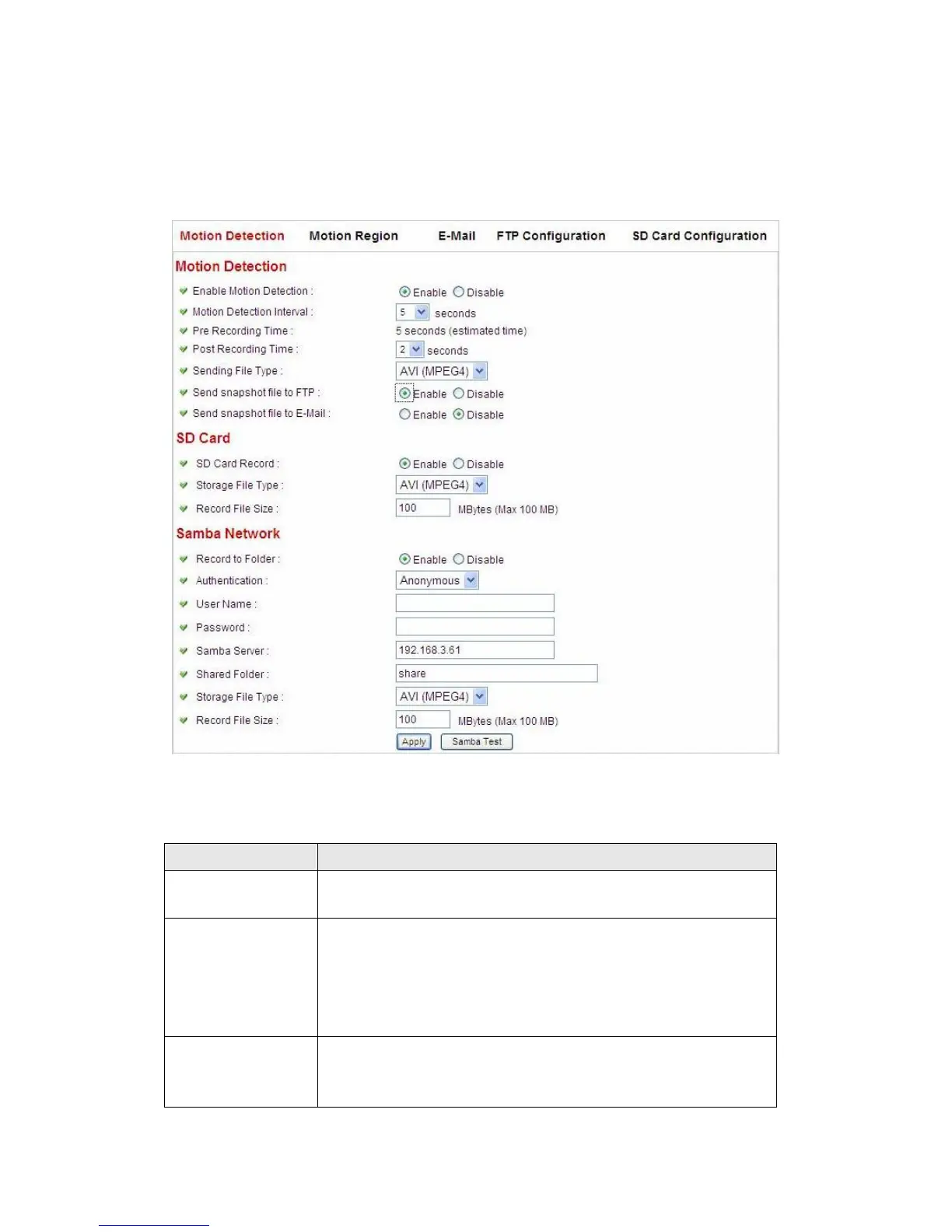 You can use this menu to setup basic motion detection settings: