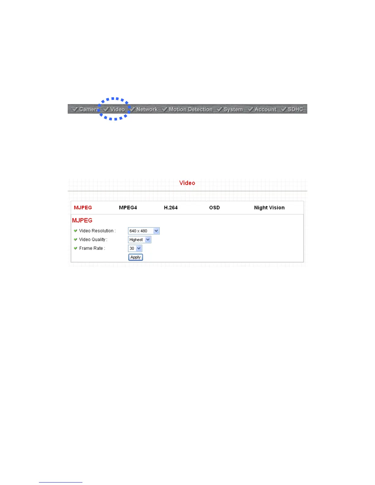 You can change video-related settings of this IP camera in Video menu.