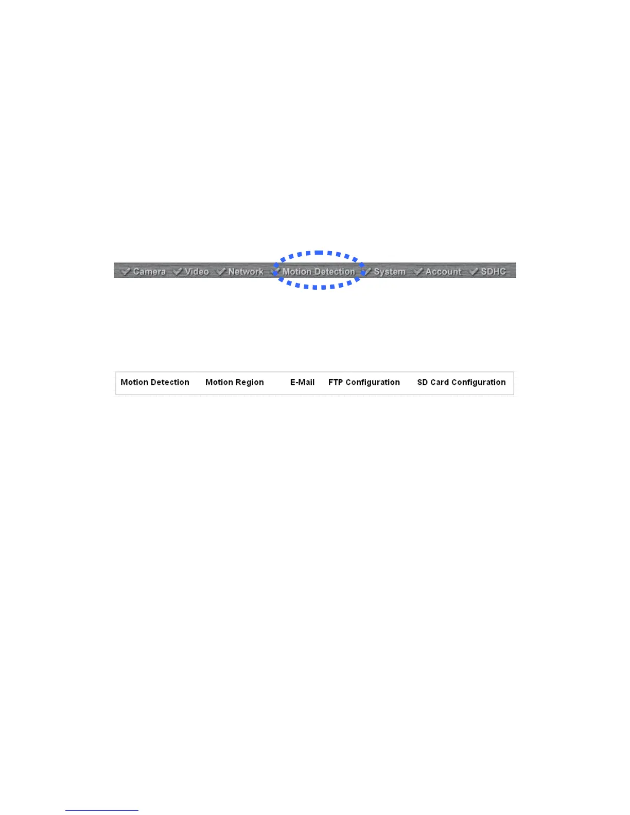 To use motion detection, click the following link from the top of menu: